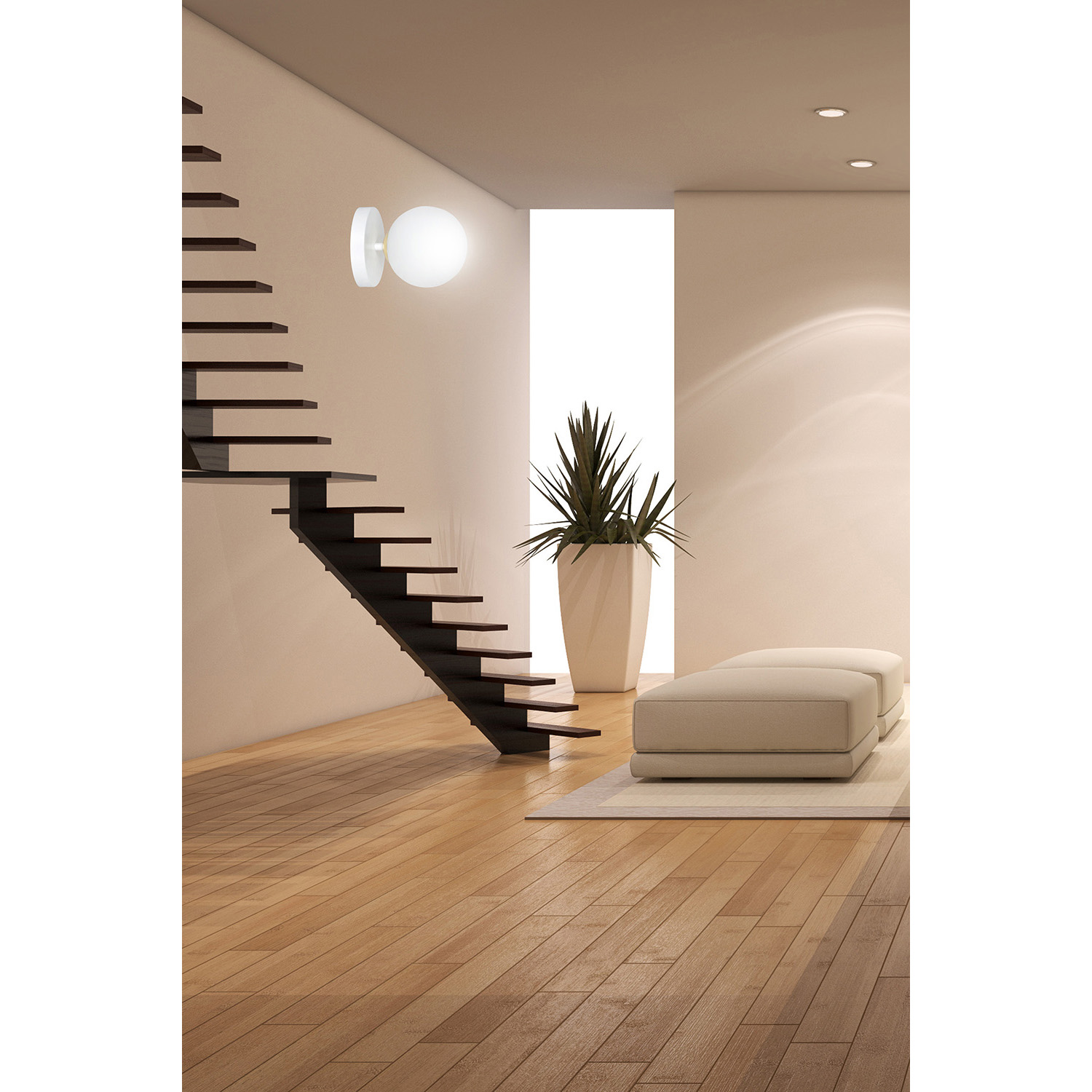 Collezione VishnuUNA LUCE CHE LASCIA IL SEGNOApplique 1 luce realizzata con base rotonda in metallo bianco con braccio e paralume in vetro opalino di forma sferica c..