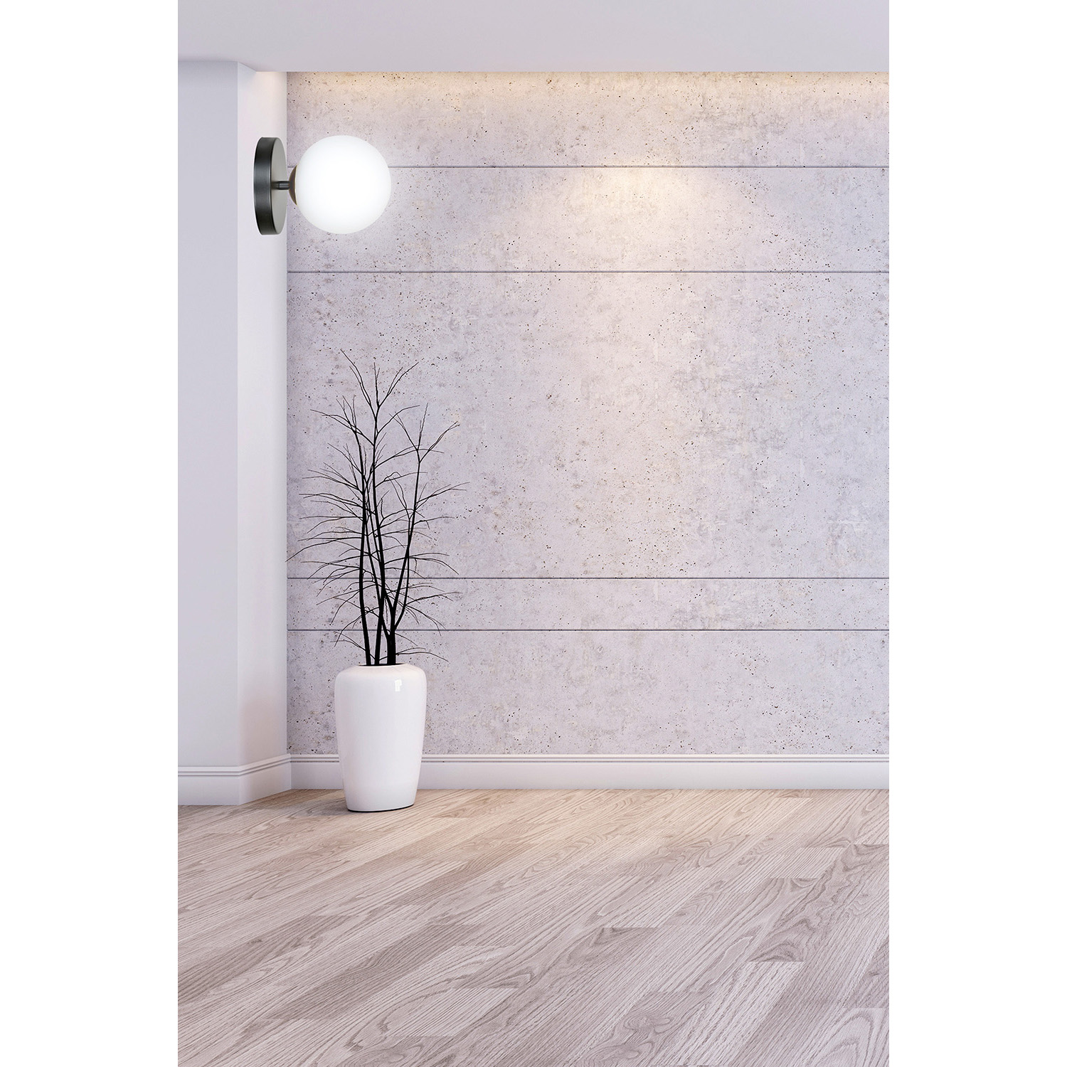 Collezione VishnuUNA LUCE CHE LASCIA IL SEGNOApplique 1 luce realizzata con base rotonda in metallo bianco con braccio e paralume in vetro opalino di forma sferica c..