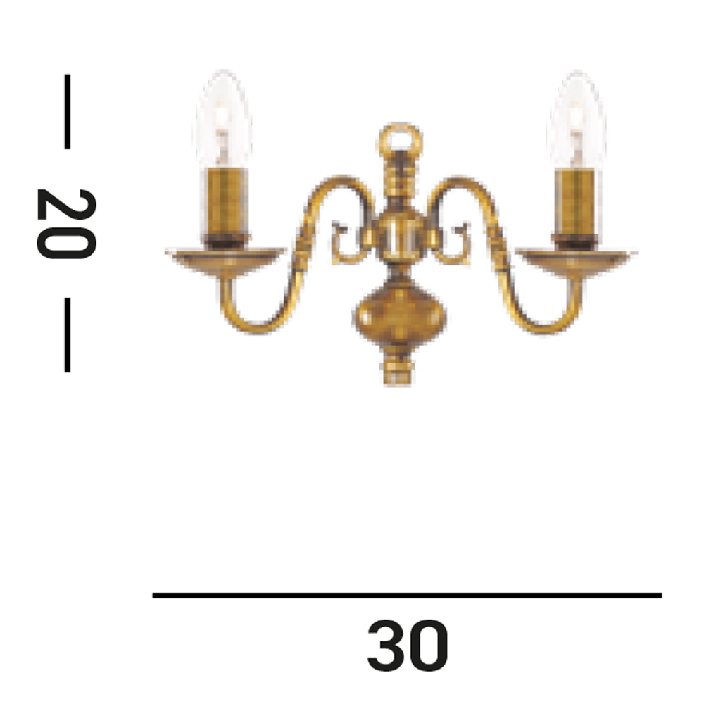 Applique Classica Fiammingo Ottone 2 Luci E14