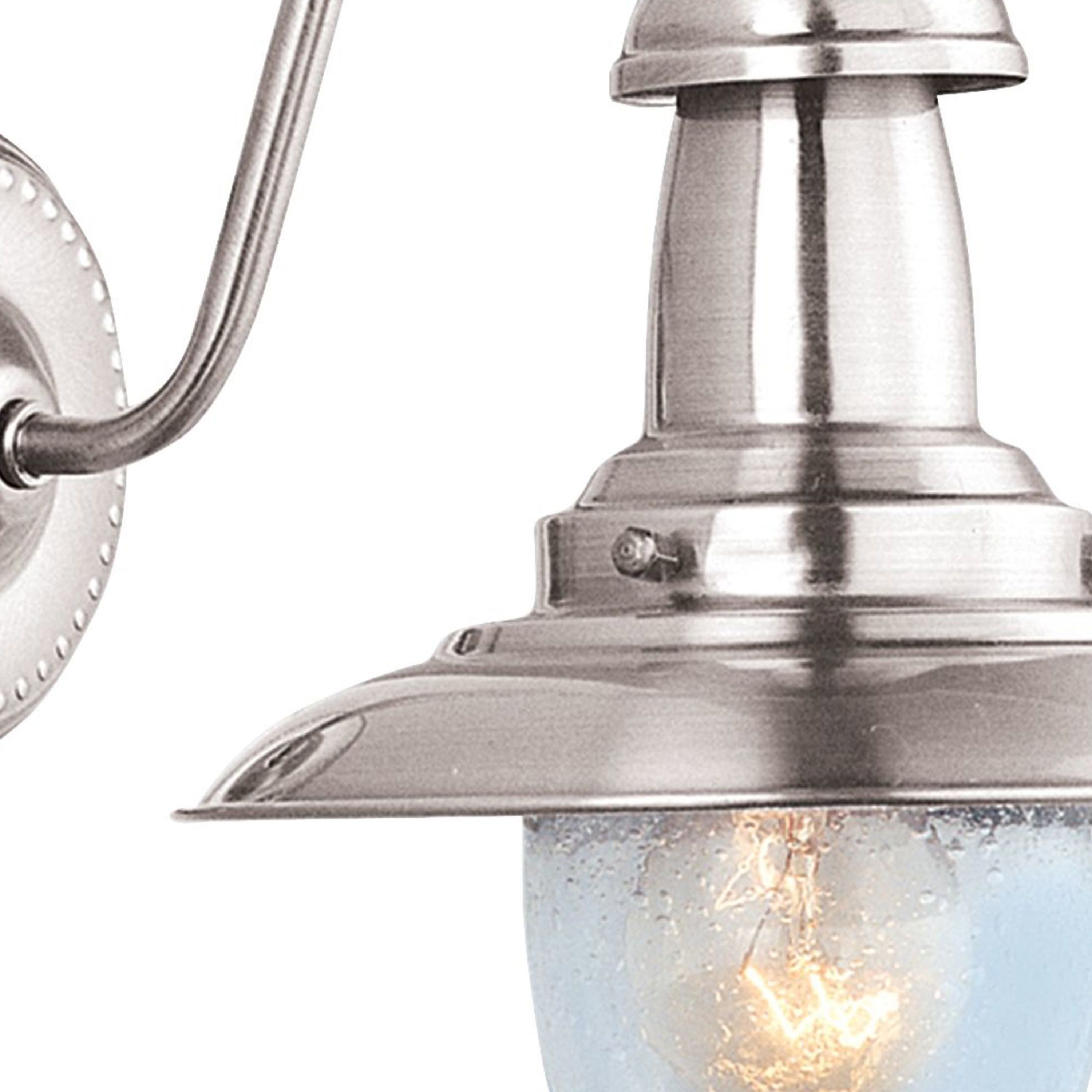 Questa lampada da parete Fisherman in argento satinato con paralume in vetro seminato ovale è una lanterna robusta dallo stile classico e industriale. Realizzato con una moderna finitura argento satinato, ha bordi arrotondati e lisci e attacco a parete in stile vintage, con un paralume in vetro seminato ovale che fornisce un elegante effetto goccia d'acqua che starà a suo agio in qualsiasi spazio abitativo tradizionale. Inoltre è dotato di un pratico interruttore a tirante.