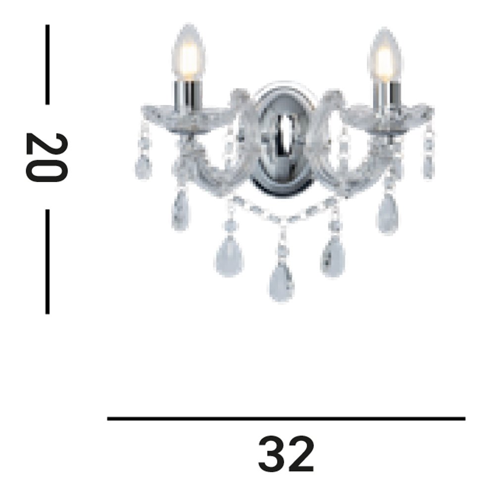 Applique Classica Marie Therese Acciaio Cromo Vetro 2 Luci E14