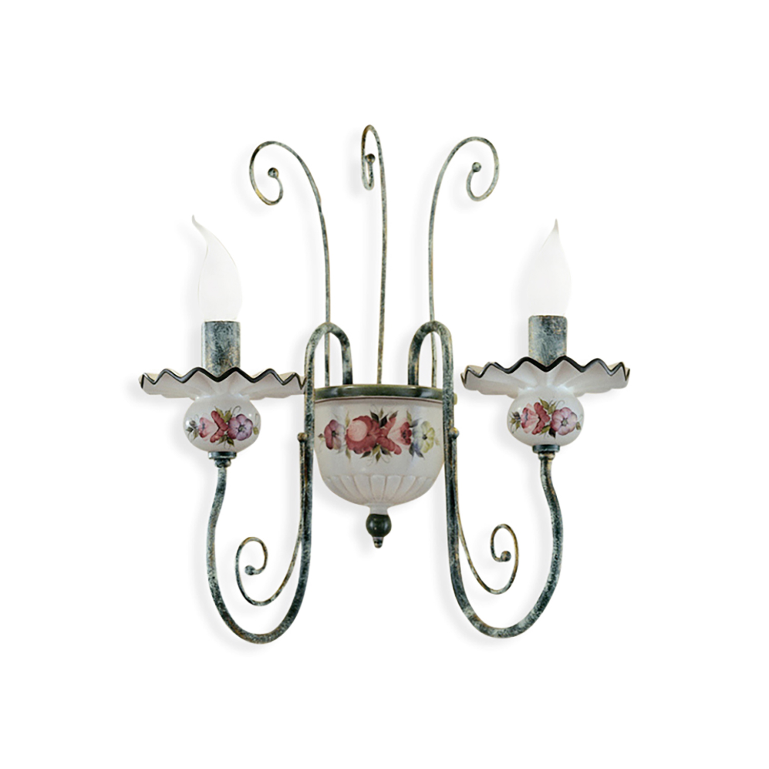Applique Classica Sanremo Metallo E Ceramica Bianco Sfumato Argento 2 Luci E14