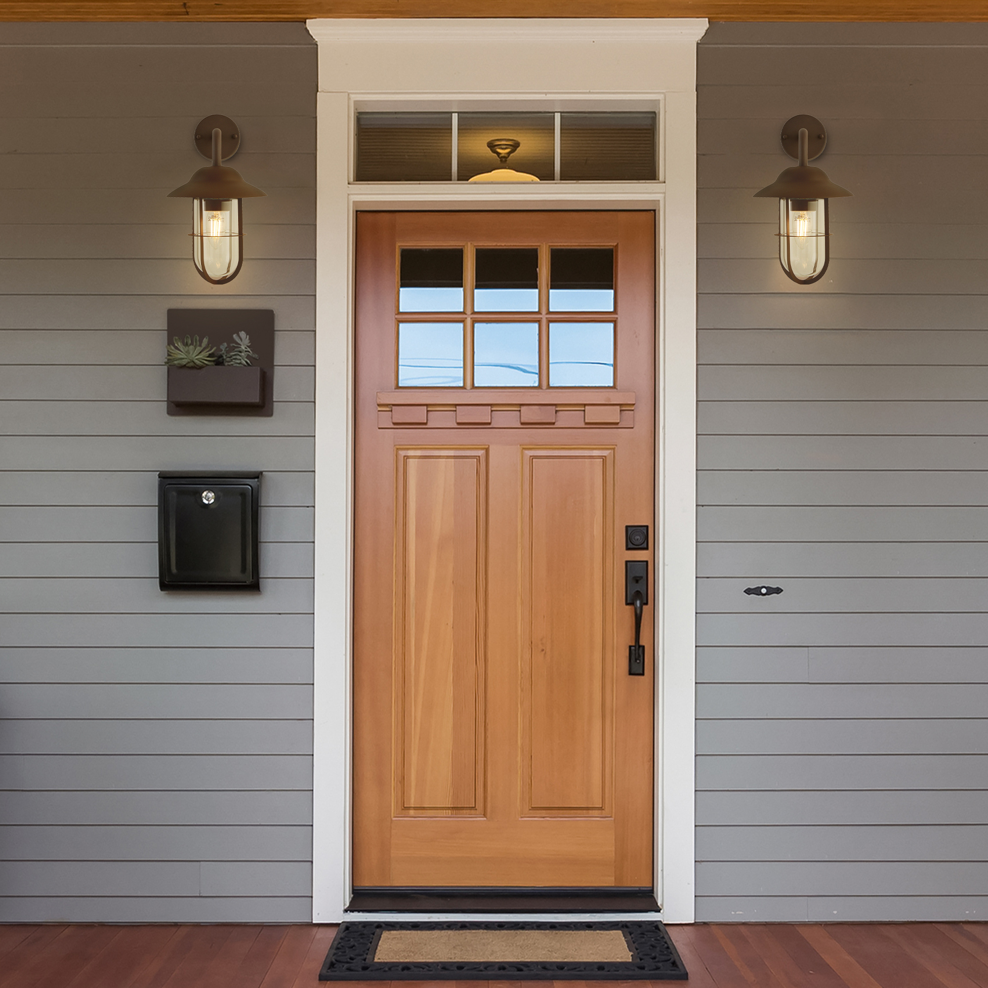 L'applique da esterno Toronto è tradizionalmente progettata con un distinto tocco marittimo. Questa versione moderna del design classico della lanterna ha una struttura a forma di gabbia marrone ruggine con un coperchio a cupola che conduce a una staffa a parete circolare. Il diffusore in vetro trasparente starebbe benissimo illuminando il tuo giardino o le aree esterne e la lanterna da parete è classificata IP44 e completamente resistente agli spruzzi d'acqua per proteggerla dagli elementi.