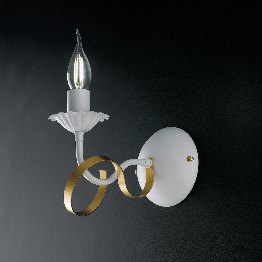 Applique Classico 1 Luce Ferro Battuto Bianco E Oro Serie Bandolo