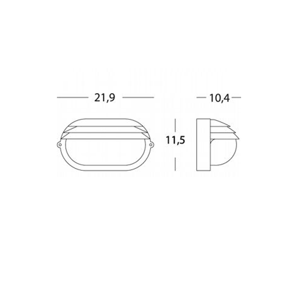 Collezione Palpebra OvaleLUCE SPINTA VERSO IL BASSOLampada da parete per esterno a 1 luce in alluminio pressofuso, color nero goffrato.. Disegnata per ambientazioni..