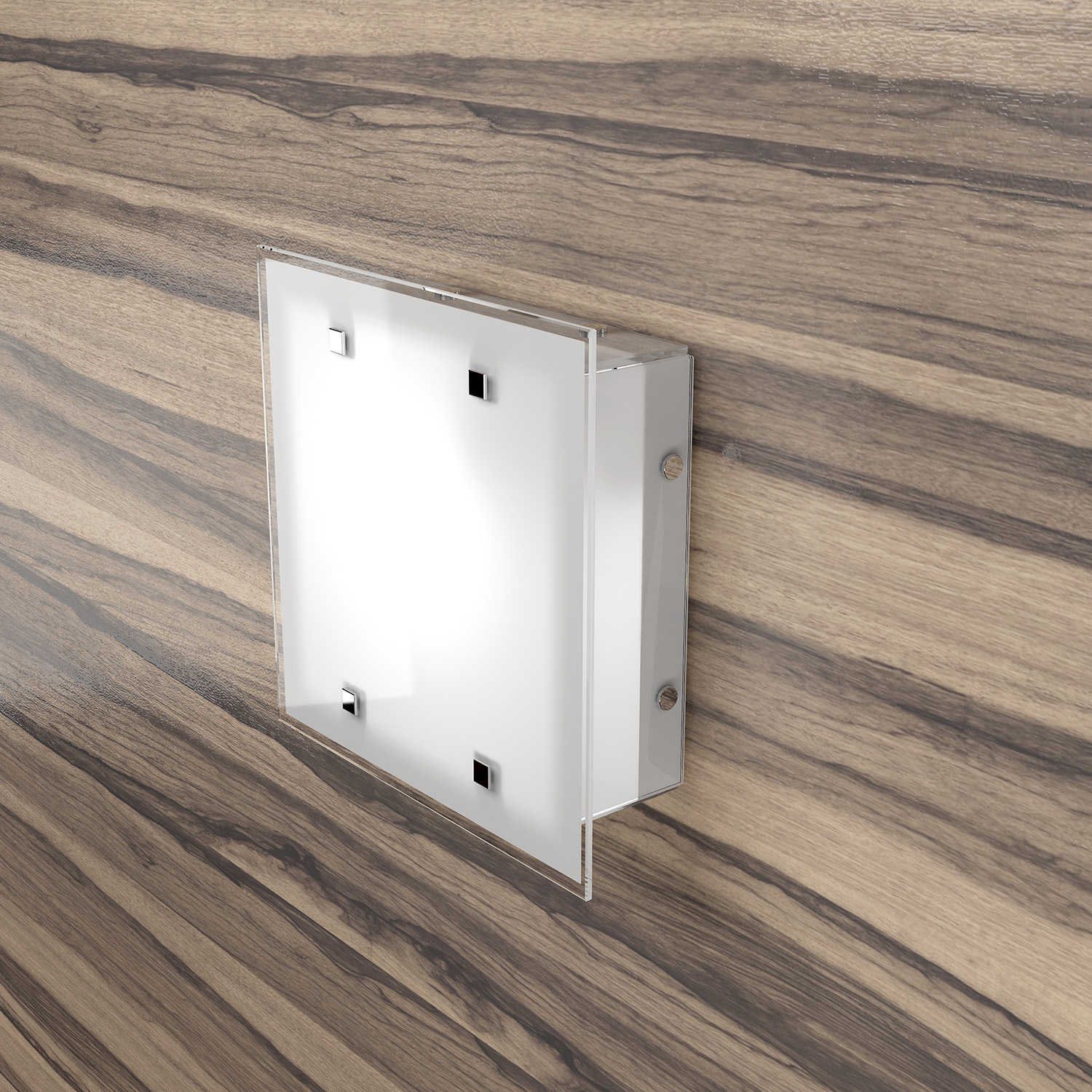 Collezione di lampade composte da diffusori di vetro in lastra extrachiaro satinato con bordi trasparenti. La struttura metallica che sorregge i vetri è bianca ed i fissaggi dei vetri sono cromati. Completa la collezione una lampada da appoggio in metallo cromato con vetro serigrafato bianco con bordi trasparenti. Questo articolo è disponibile in diverse finiture e/o dimensioni. E' possibile indicarlo nell'apposito campo NOTE presente in conclusione di ordine oppure contattarci dopo aver effettuato l'ordine.
