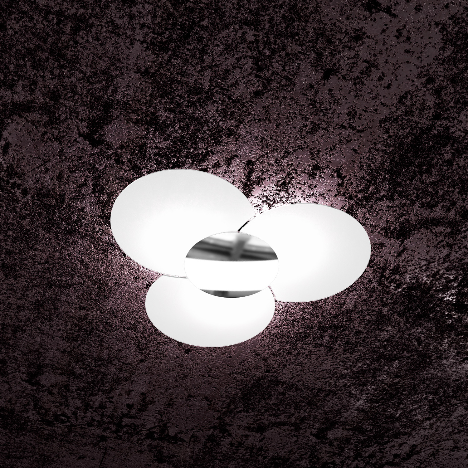 Collezione CLOVERPORTA LA FORTUNA CON TECollezione di lampade da parete o da plafone con struttura metallica bianca e diffusori in vetro tondo in lastra extrachiaro ..