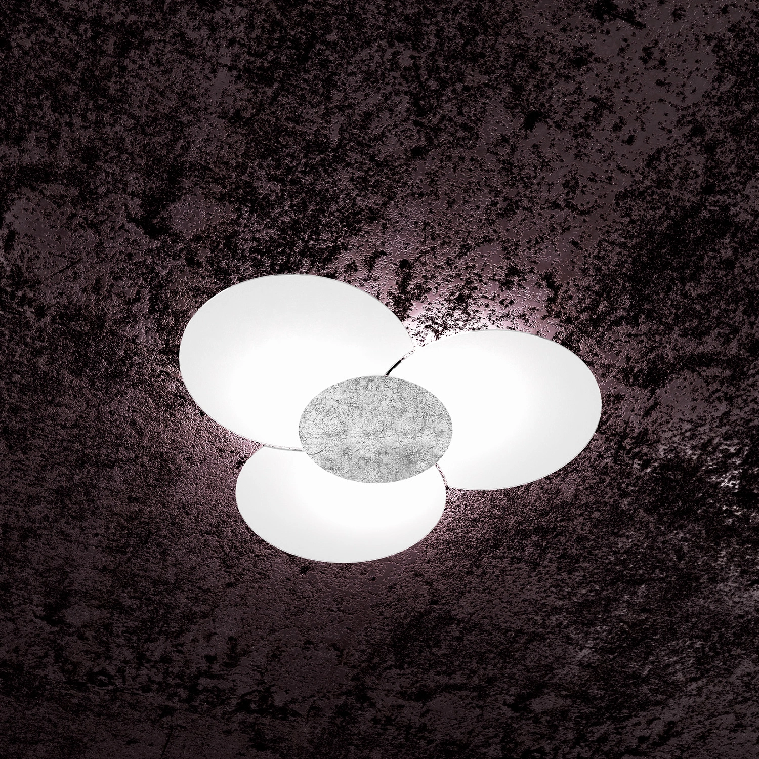 Applique Contemporanea Clover Metallo Foglia Argento Vetro Bianco 3 Luci E27
