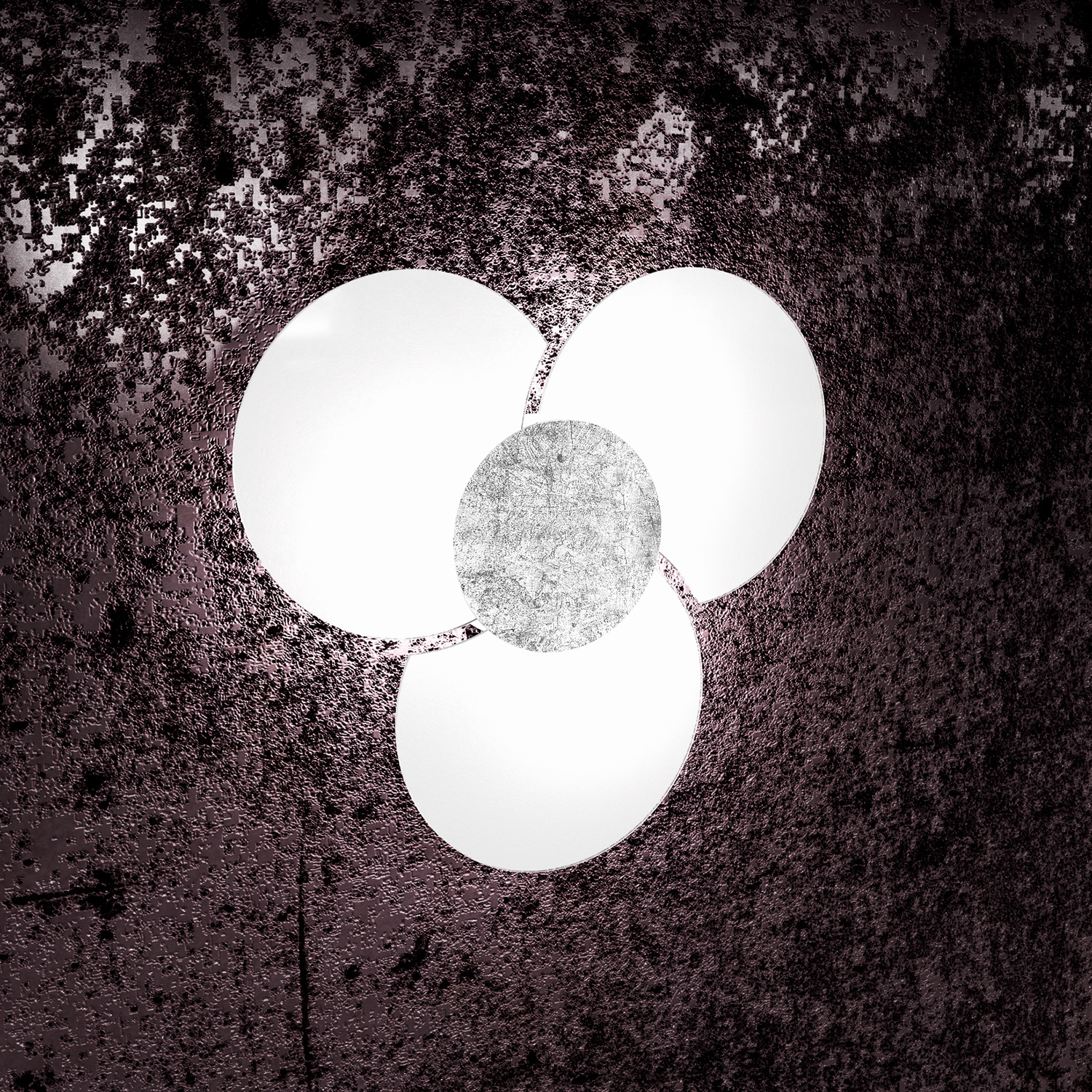 Applique Contemporanea Clover Metallo Foglia Argento Vetro Bianco 3 Luci E27