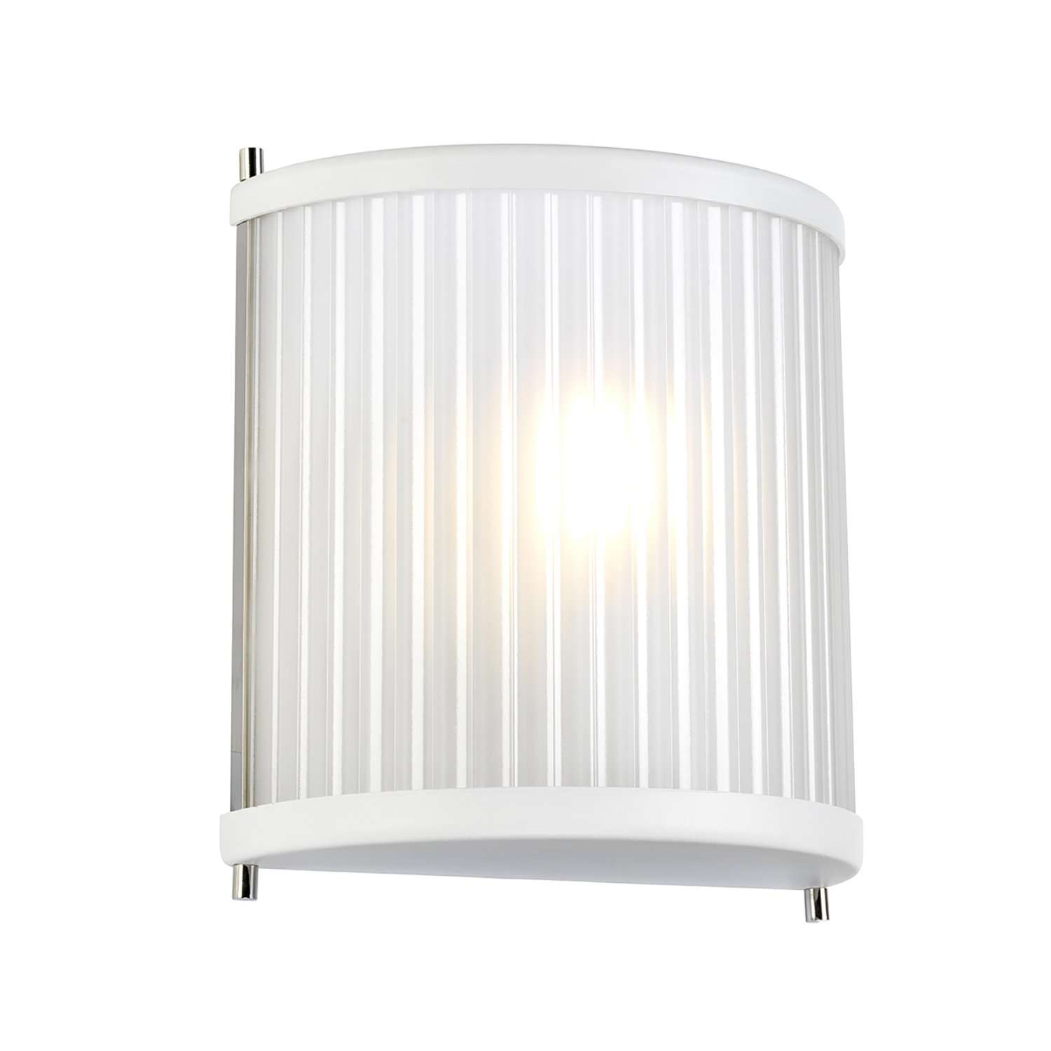 Lampada da parete a 1 luce - Bianco e Nichel lucido. Corona è una versatile serie di lampade a sospensione in vetro che funziona ugualmente bene come sospensione, soffito, o plafoniera. I pannelli laterali in vetro smerigliato diffondono morbidamente la luce, mentre l'ampio diffusore in vetro bianco opalino contribuisce ad illuminare in modo pulito e nitido lo spazio sottostante.