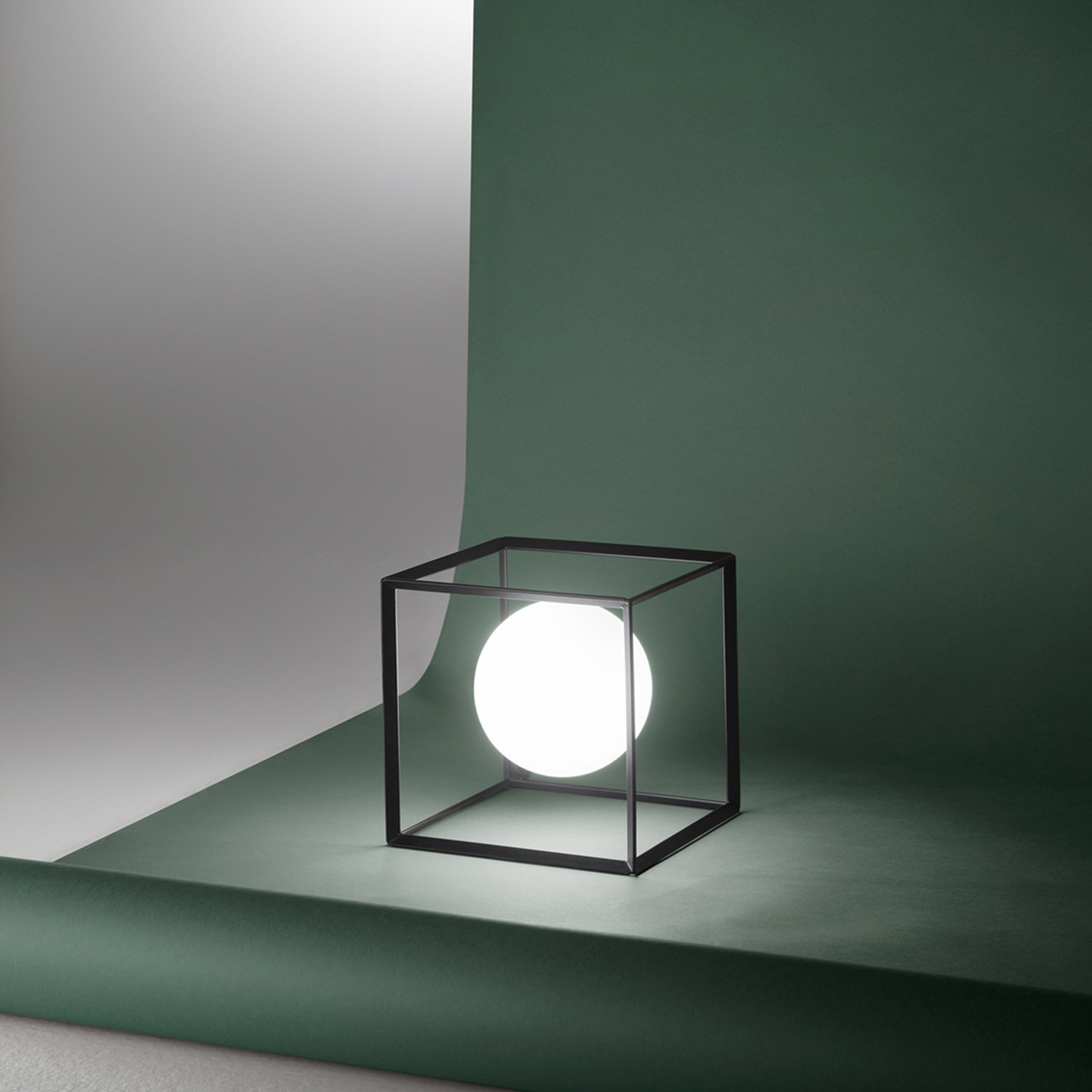 Collezione CubeLUCE GEOMETRICALampada da tavolo realizzata in metallo verniciato di colore nero, forma cubica e il design moderno e lineare la rendono adatta a quals..