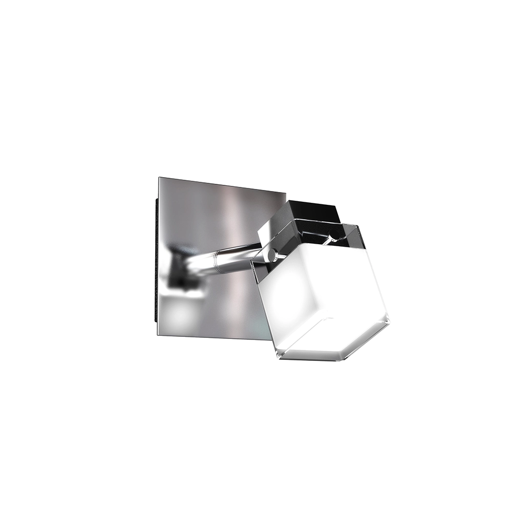 Faretto 1 luce orientabile con struttura metallica cromata.. Diffusore quadrato in vetro satinato e bordi trasparenti, che crea un effetto di luce e trasparenza divertente e originale. Dice è la luce che si adatta al tuo umore, sia che tu li usi per illuminare un angolo, una parete o un mobile.