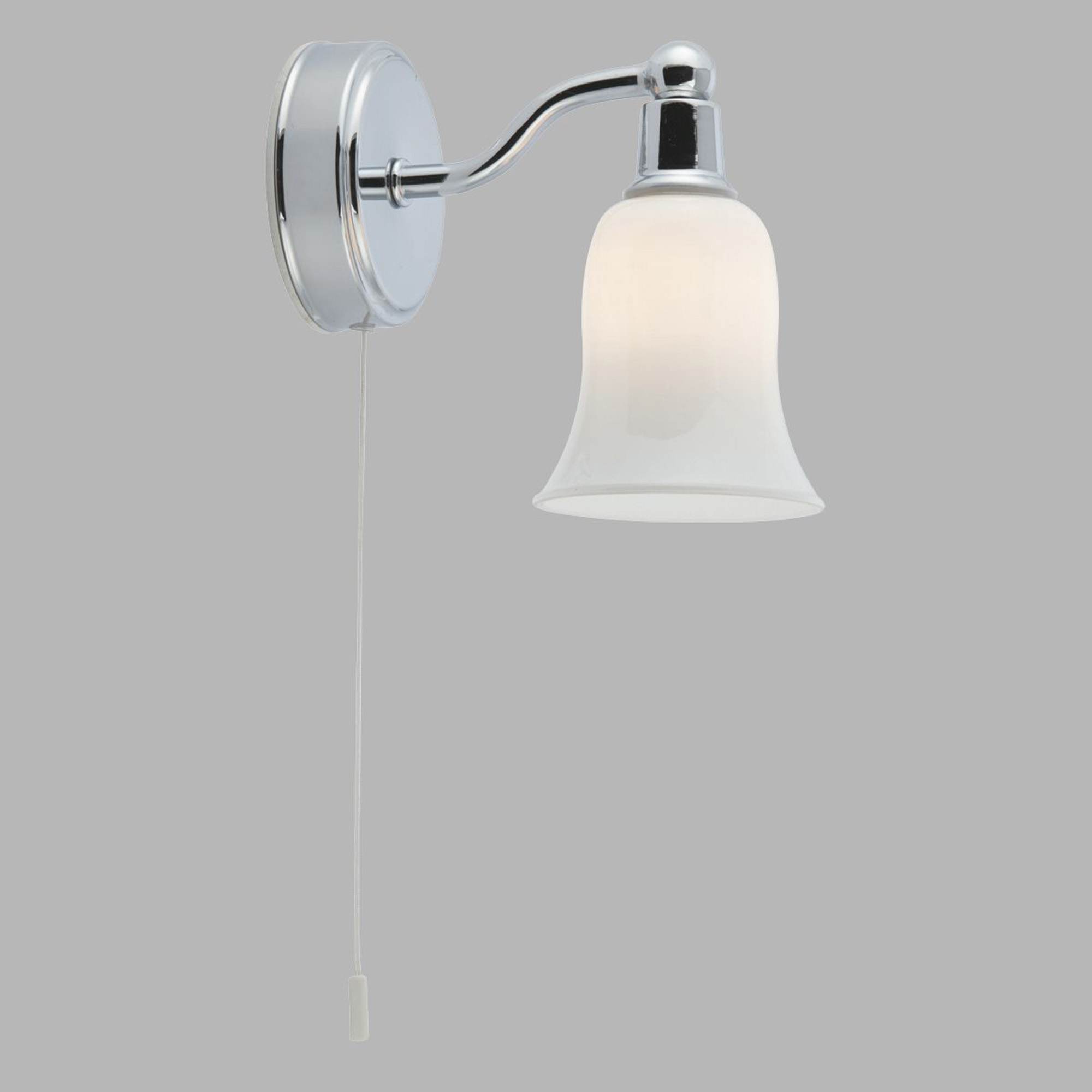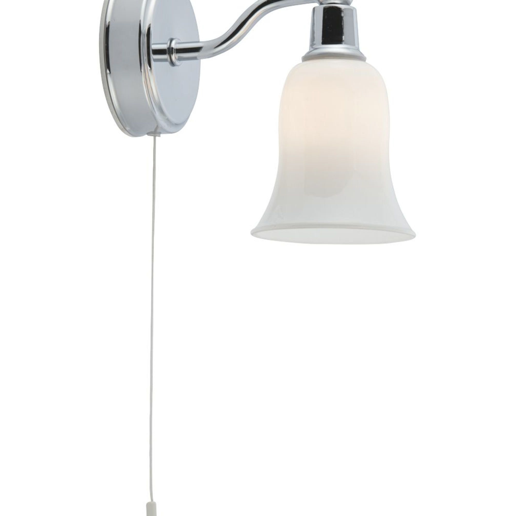 L'applique LED da bagno Ecuador con paralume in vetro bianco a forma di campana e interruttore a tirante è una versione moderna di un design classico. Il pratico cordino è perfetto per il bagno e il paralume in vetro opalino crea un elegante effetto luminoso. L'apparecchio ha anche un'attraente finitura cromata, è classificato IP44 e completamente resistente agli spruzzi d'acqua, completo di lampade a LED. I LED consumano fino al 75% di energia in meno e durano fino a 20 volte di più rispetto alle lampadine a incandescenza.