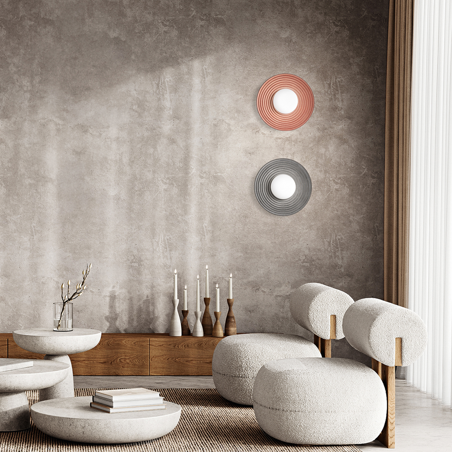Applique Contemporanea Huevo Metallo Cemento Terracotta 1 Luce E27 Ip20