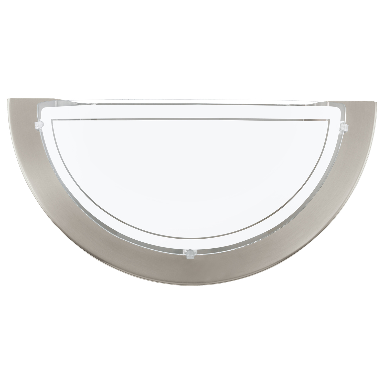 La lampada da parete PLANET 1 è costituita da un corpo metallico semicircolare nickel opaco e da una copertura in vetro.. La decorazione sul bordo del coperchio laccato bianco trasparente completa con eleganza il design. Grazie al look classico, la lampada da parete si adatta perfettamente a quasi tutti gli interni ed è adatta praticamente per tutti i locali, sia in cucina, che in soggiorno, che in camera da letto o lungo il corridoio. La lampadina (attacco E27) non è contenuta nella confezione