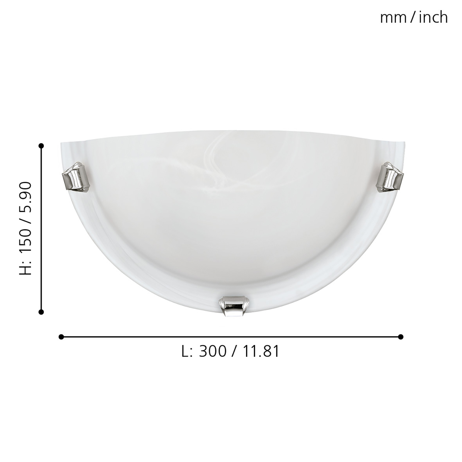 L’applique SALOME è composta da un plafone semi-sferico in vetro alabastro bianco e da discrete staffe di montaggio in metallo color cromo.. Con il suo design semplice ed intramontabile, questa lampada è adatta a svariati arredi in ogni stanza, che sia il soggiorno, il corridoio o la cucina. La lampadina, con attacco E27, non è inclusa.