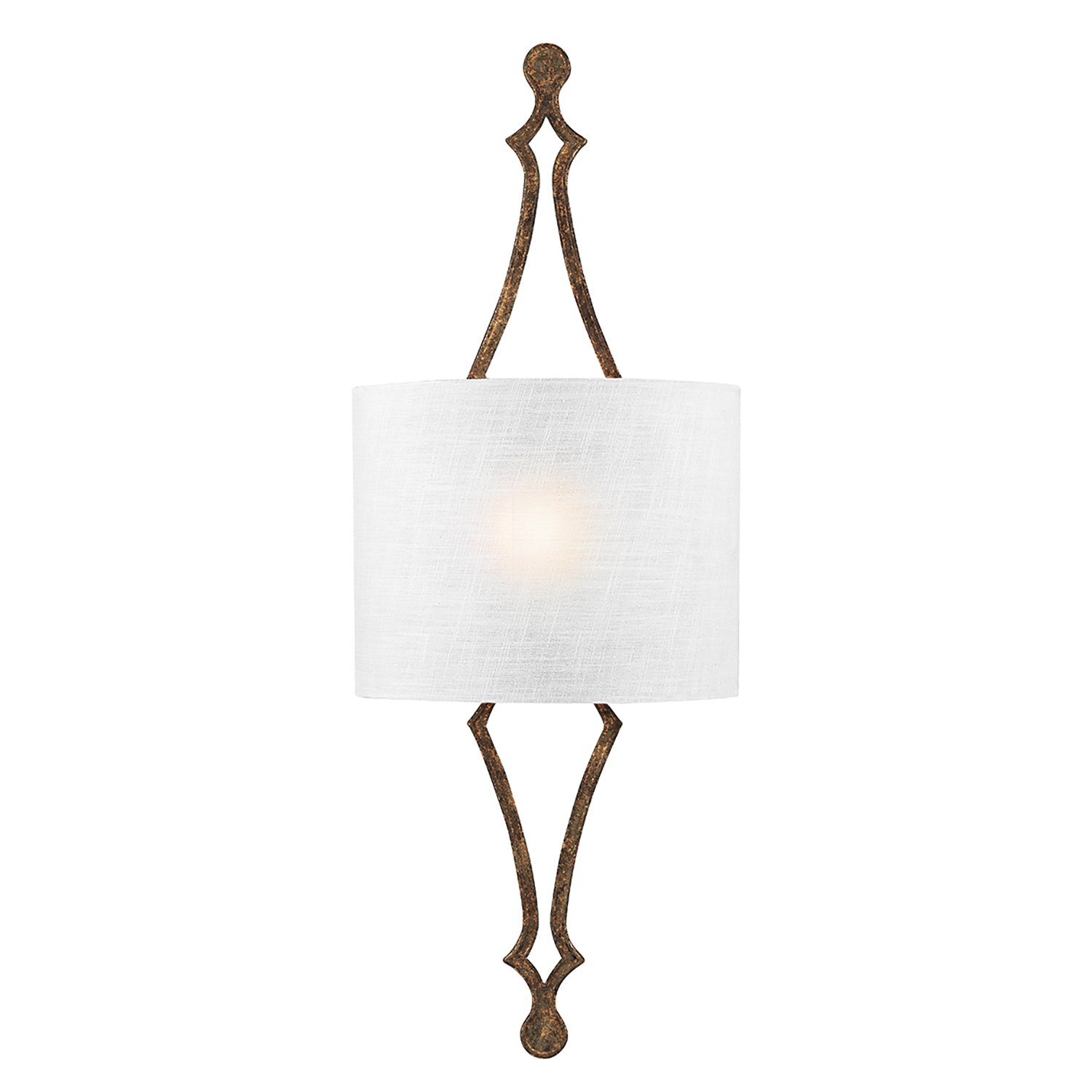 Lampada da parete a 1 luce. Il profilo oversize dell'applique Tilling si fa notare per il suo stile tradizionale e per l'uso delle finiture in ferro anticato e in foglia d'oro. La lampada è ben bilanciata da un paralume in lino bianco.