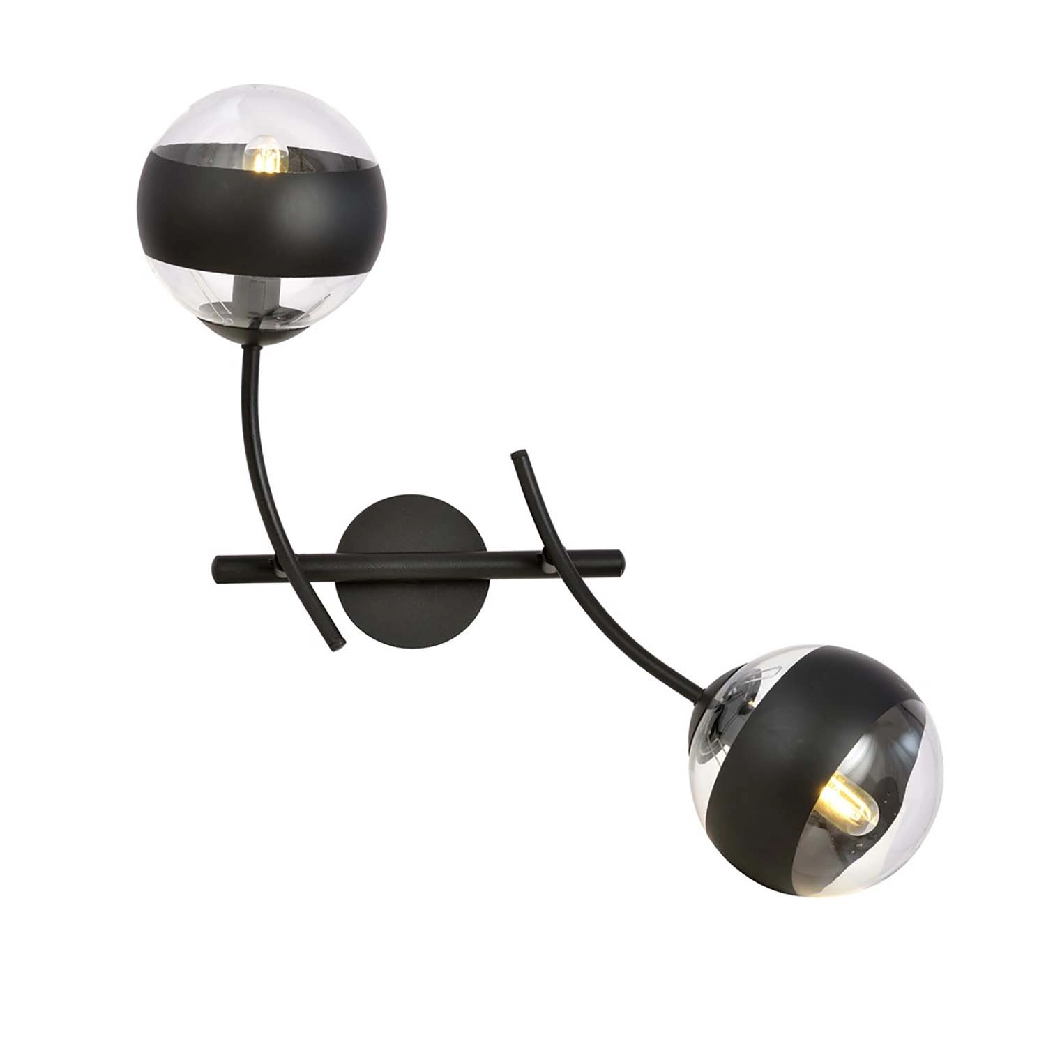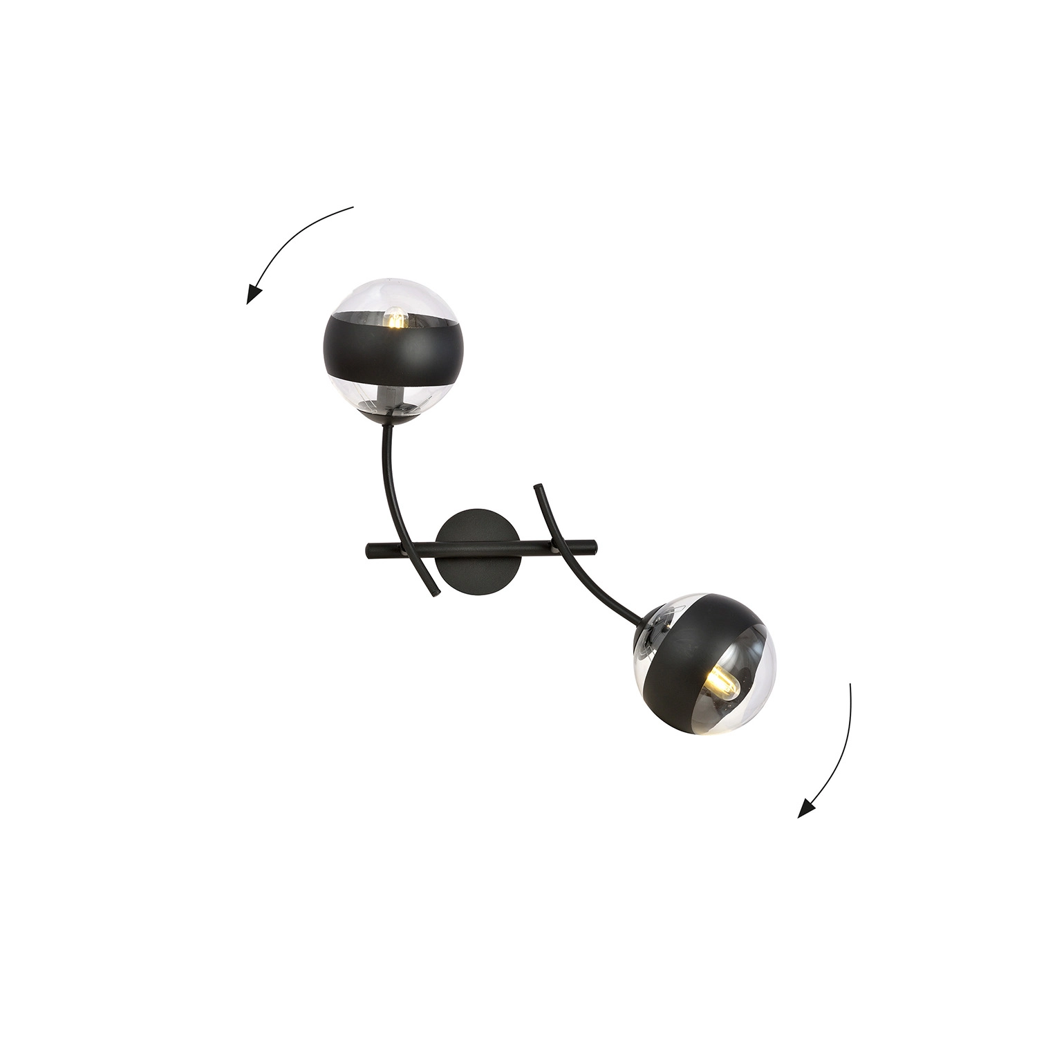 Collezione OceanoNATA DA UN’IDEA, CRESCIUTA DA UN GESTOLampada da parete moderna realizzata con base in metallo nero con bracci curvi regolabili e due coppe sferiche..