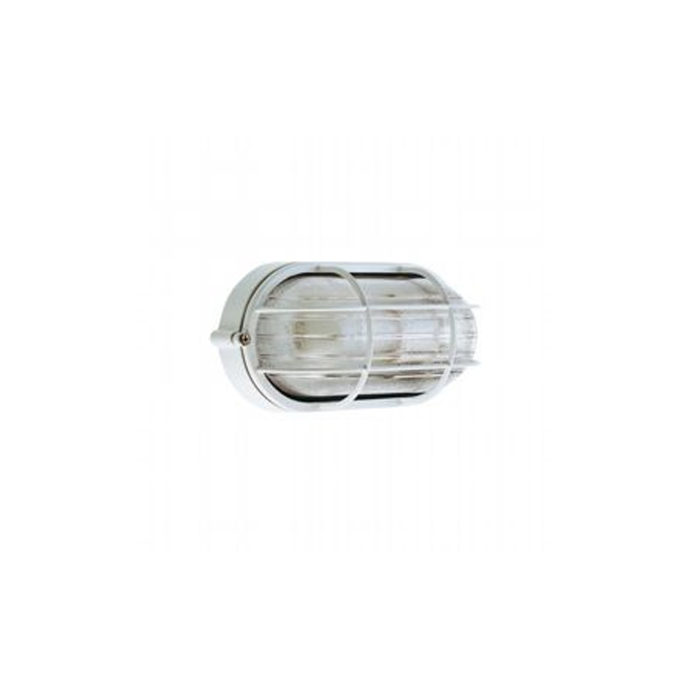 Applique Da Esterno Industriale Ovale Alluminio E Vetro Bianco 1 Luce E27