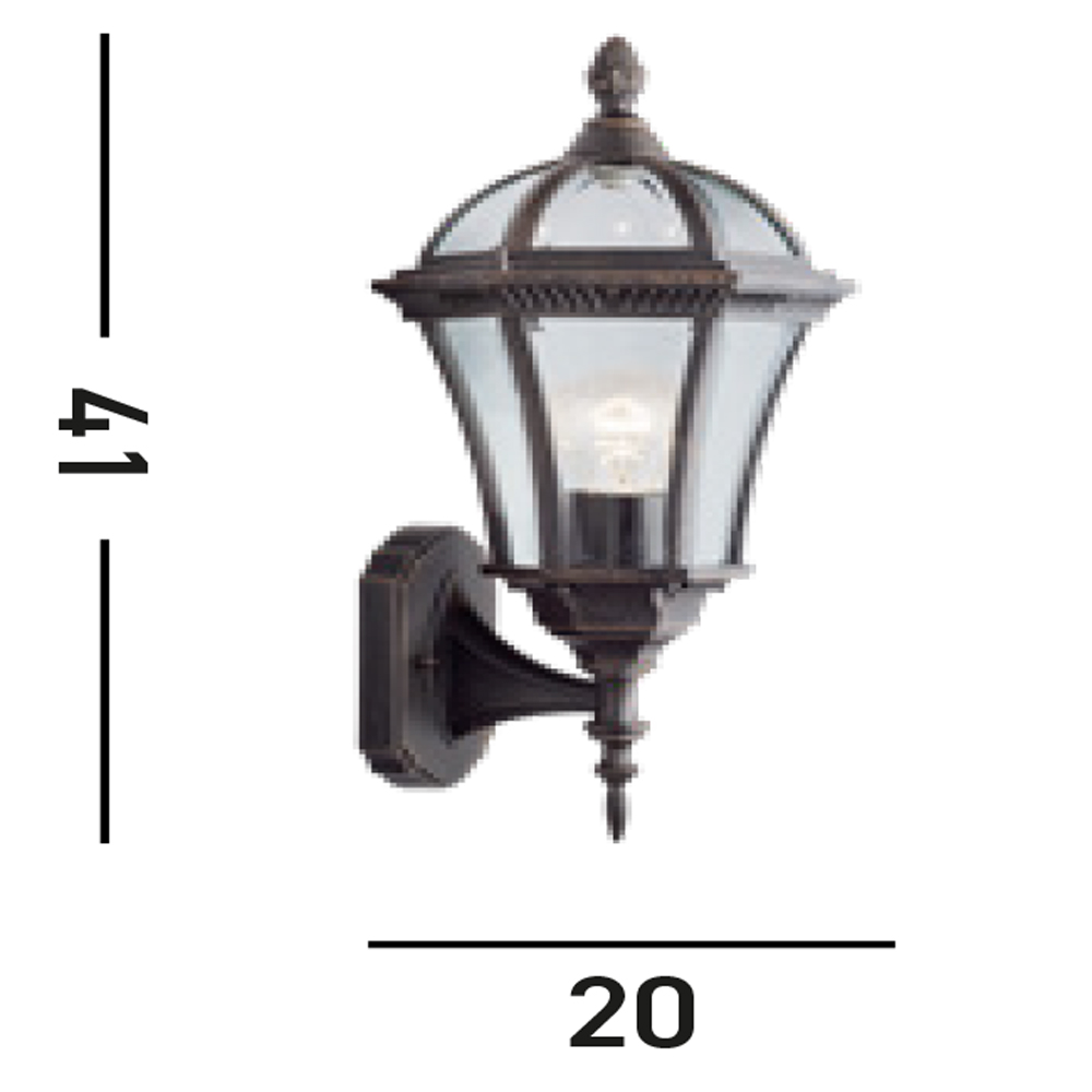 Applique Da Esterno Vintage Lato Alto Capri Alluminio Marrone Vetro 1 Luce E27