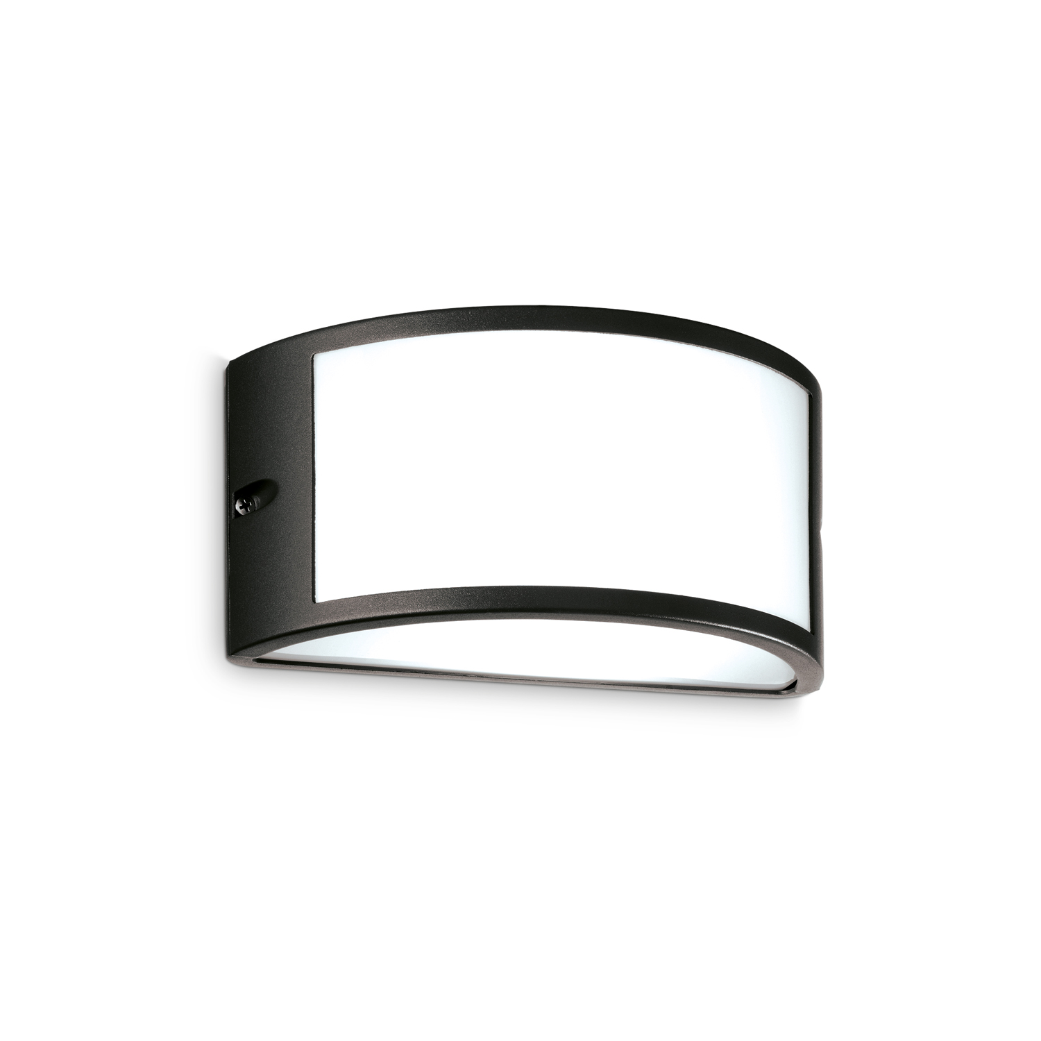 Applique da parete Contemporanea Rex Alluminio Nero 1 Luce E27 60W IP44 A++ h.12 D. L.25 P.13 Lampadina non inclusa. Corpo luce in alluminio pressofuso verniciato a polveri di colore antracite, bianco, coffee, grigio o nero. Diffusore bianco in materiale acrilico.