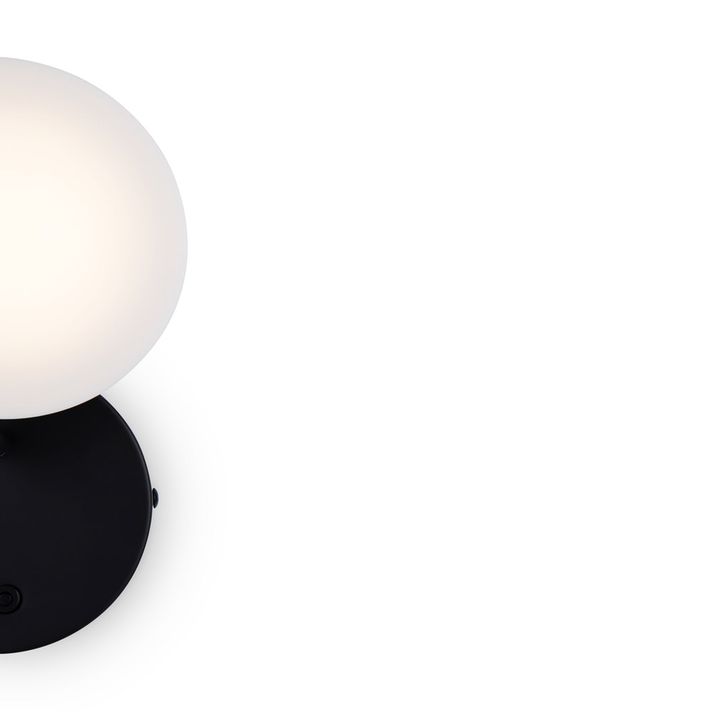 Armatura e plafoniere in metallo. Colori – nero opaco e nero.. Le plafoniere ruotano di 340° in orizzontale e di 90° in verticale. Diffusore in acrilico opaco. Modulo LED integrato. Interruttore dell’applique e della lampada da tavolo con dimmer.