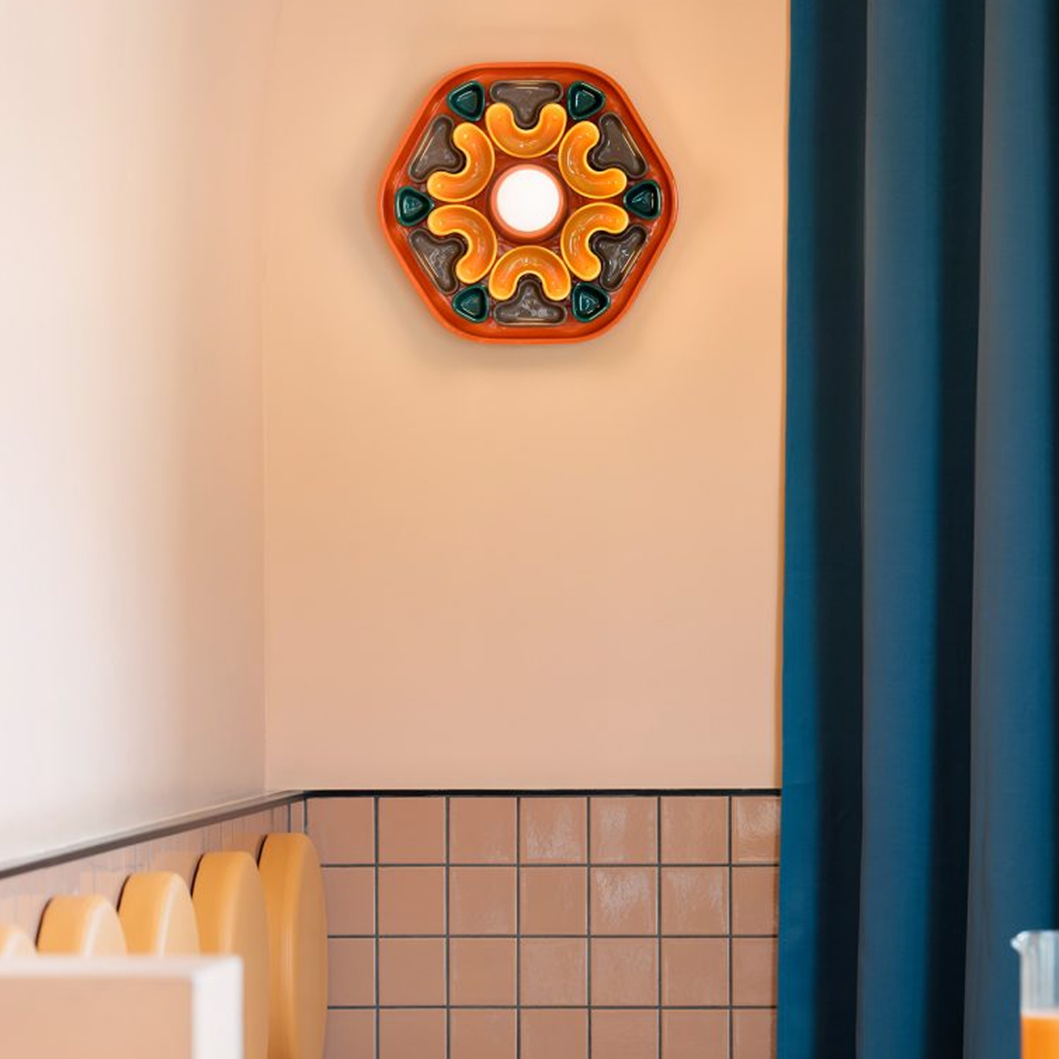 In ogni modo tu la voglia vedere, Phytia trasformerà in ogni caso la tua parete in un organismo vivo e palpitante rimodulando la luce con nuove geometrie. Armonia ritmica dei frammenti ricomposti di un caleidoscopio, Phytia raccoglie la luce e la riflette, moltiplicandola, attraverso un giardino di forme vibranti e intensi colori, geometria ipnotica che richiama motivi floreali, primigenie simmetrie e un rigoroso ordine naturale. Ognuno dei minuti elementi in ceramica sembra danzare attorno alla sorgente luminosa, in un gioco di ombre e riflessi che trasforma la parete in un organismo vivo e palpitante. Come i petali di una corolla che si apre al sole, questo oggetto luminoso per la parete è equilibrio e meraviglia, capace di accogliere la luce e restituirla in sempre nuove modulazioni. Designed by Giorgio Biscaro