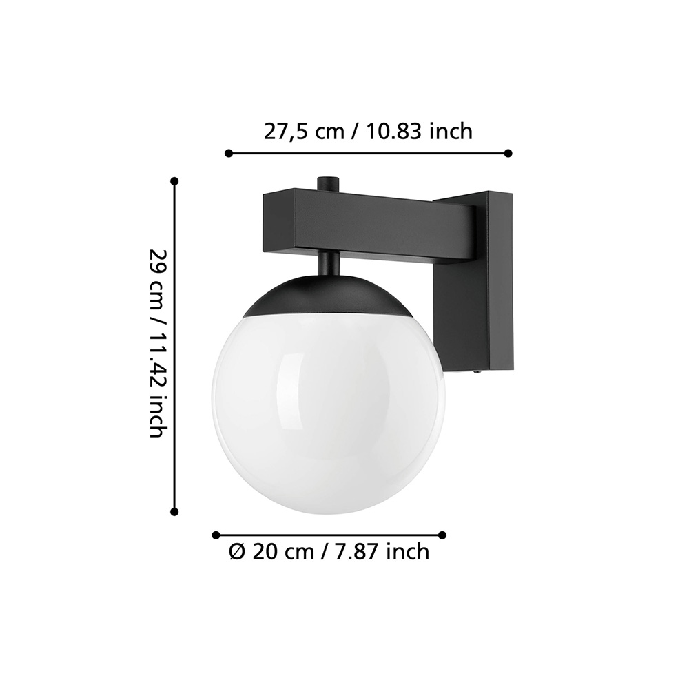 Applique Esterno Contemporanea Bufalata Acciaio Nero Policarbonato Bianco E27