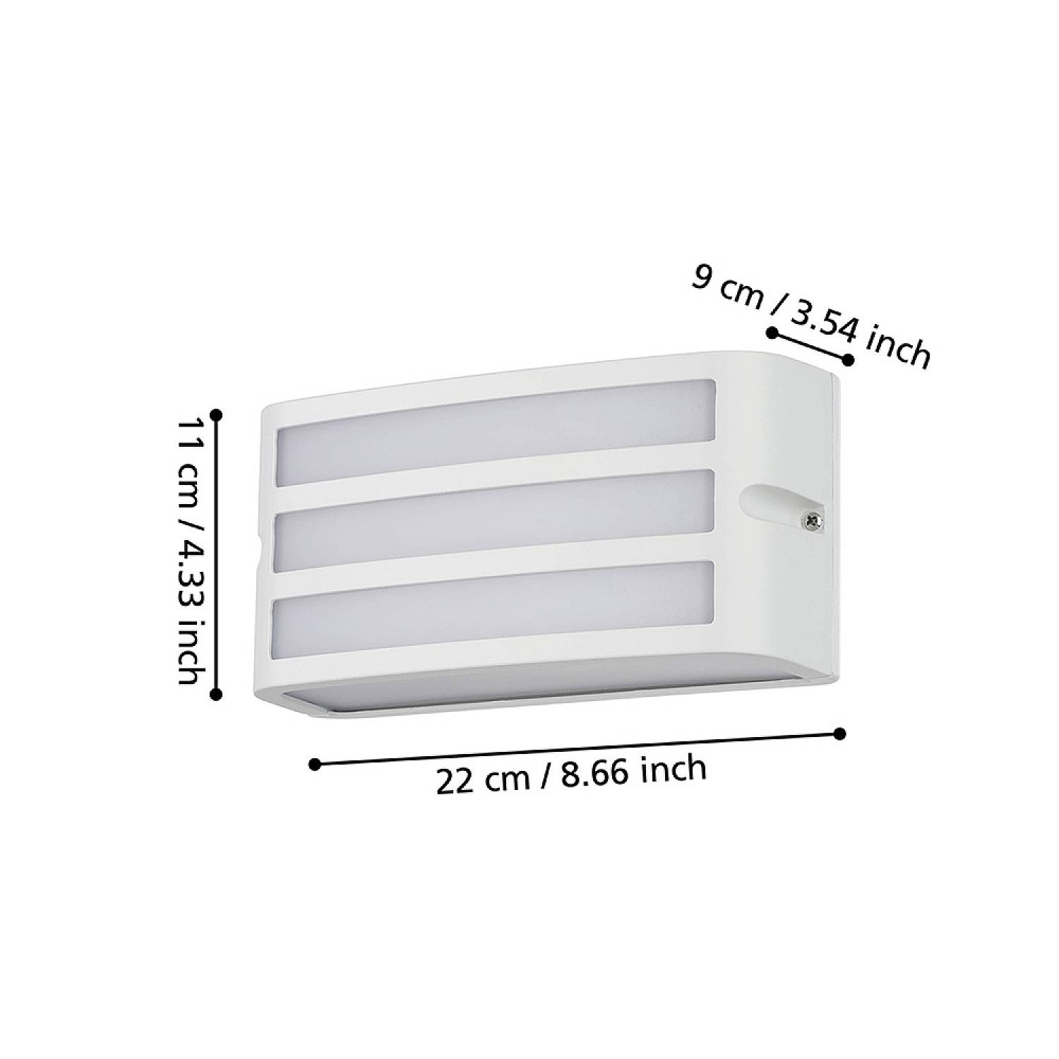 L'applique esterna CAMARDA ha un design moderno realizzata in alluminio color bianco attraversato da policarbonato bianco. La lampada esterna ha una protezione IP54 che la rende adatta all’uso esterno. Il portalampada si adatta a qualsiasi lampadina con una presa E27.
