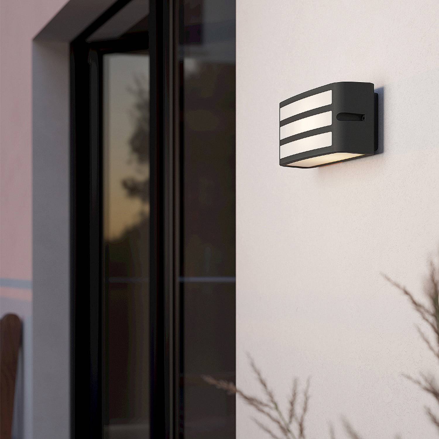 L'applique esterna CAMARDA ha un design moderno realizzata in alluminio color antracite attraversato da policarbonato bianco. La lampada esterna ha una protezione IP54 che la rende adatta all’uso esterno. Il portalampada si adatta a qualsiasi lampadina con una presa E27.