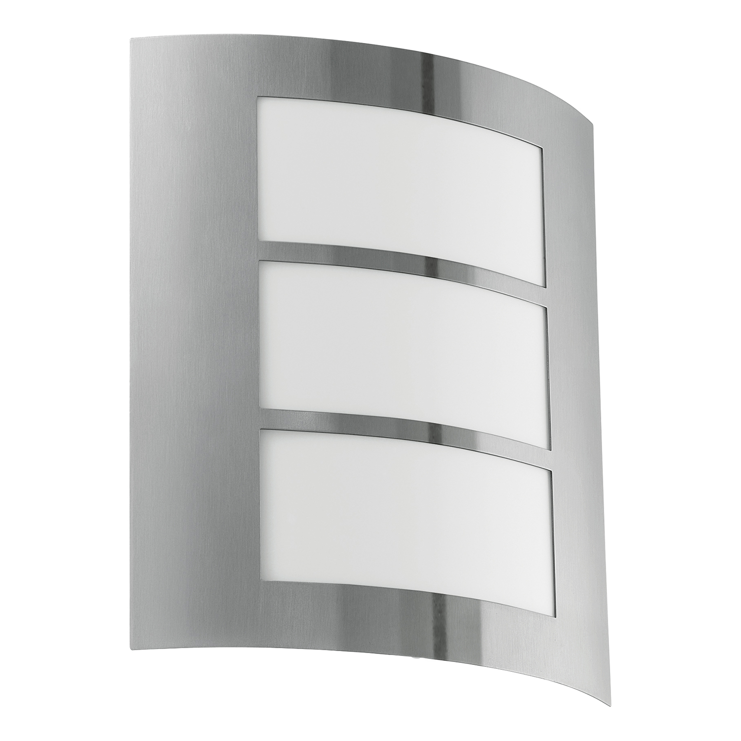 L’applique per esterni CITY è composta da un corpo in acciaio inox leggermente rigonfiato e da tre superfici luminose in plastica bianca satinata. Grazie all'elevato grado di protezione (IP44), è adatta all’utilizzo in spazi esterni. Grazie al suo design senza tempo, questa applique si armonizza in qualsiasi ambiente esterno, che sia all’ingresso di casa, il terrazzo o il balcone. La lampadina, che non è inclusa nella confezione, deve essere scelta con attacco E27.
