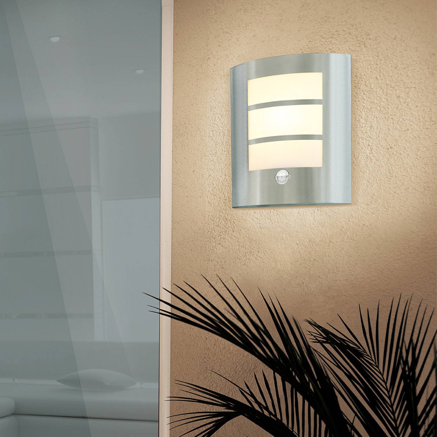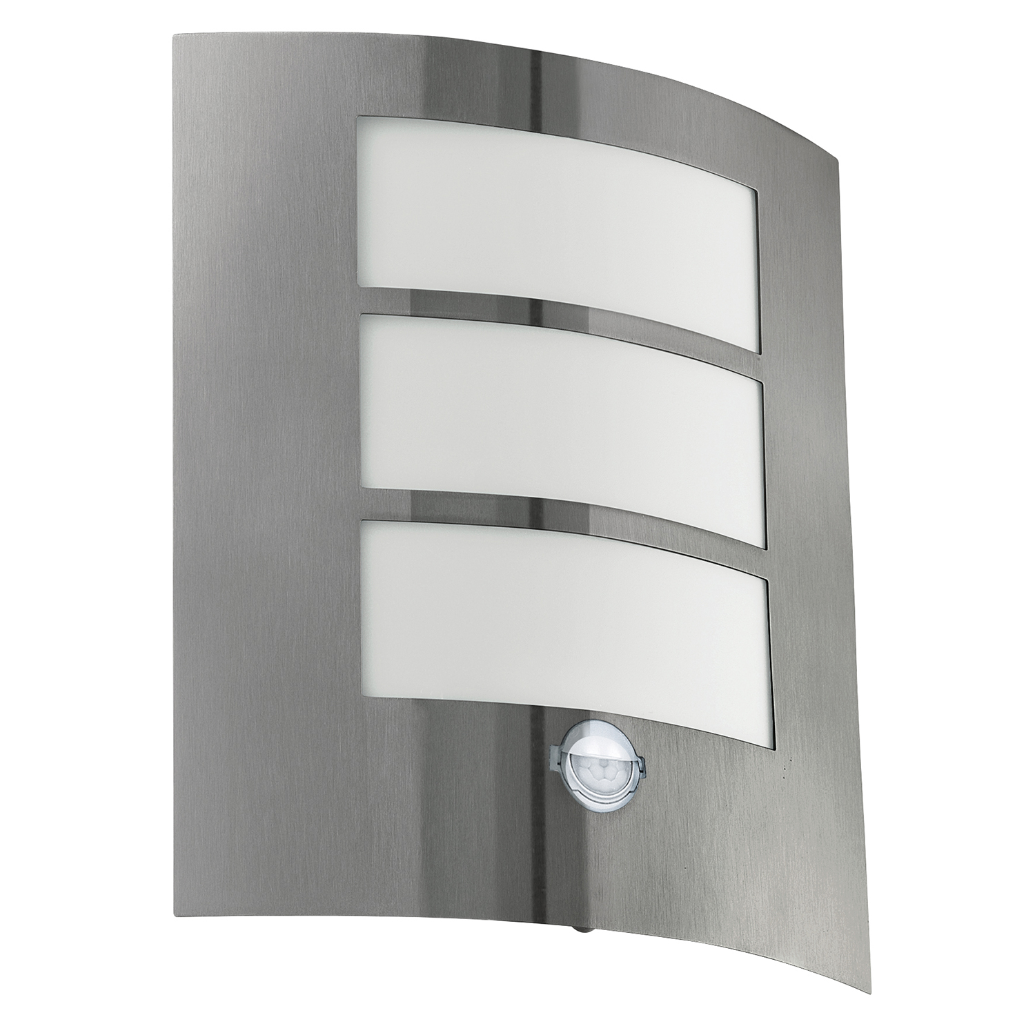 L’applique per esterni CITY è composta da un corpo in acciaio inox leggermente rigonfiato e da tre superfici luminose in plastica bianca satinata. Questa lampada è dotata di sensore crepuscolare di movimento che accende la luce al passaggio e solamente quando veramente necessario. L'elevato grado di protezione (IP44)la rende adatta all’utilizzo in spazi esterni. Grazie al suo design senza tempo, questa applique si armonizza in qualsiasi ambiente esterno, che sia all’ingresso di casa, il terrazzo o il balcone. La lampadina, con attacco E27, non è inclusa nella confezione.