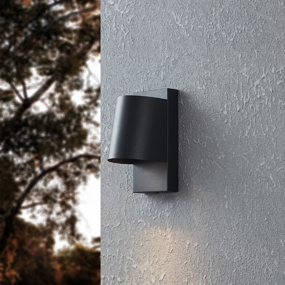 L’applique per esterni STAGNONE è realizzata in alluminio nero e la parte luminosa da un vetro chiaro. La luce è rivolta verso il basso e monta una lampadina GU10-LED non integrata. La protezione anti-spruzzo (IP54) ne consente l'uso negli spazi esterni.
