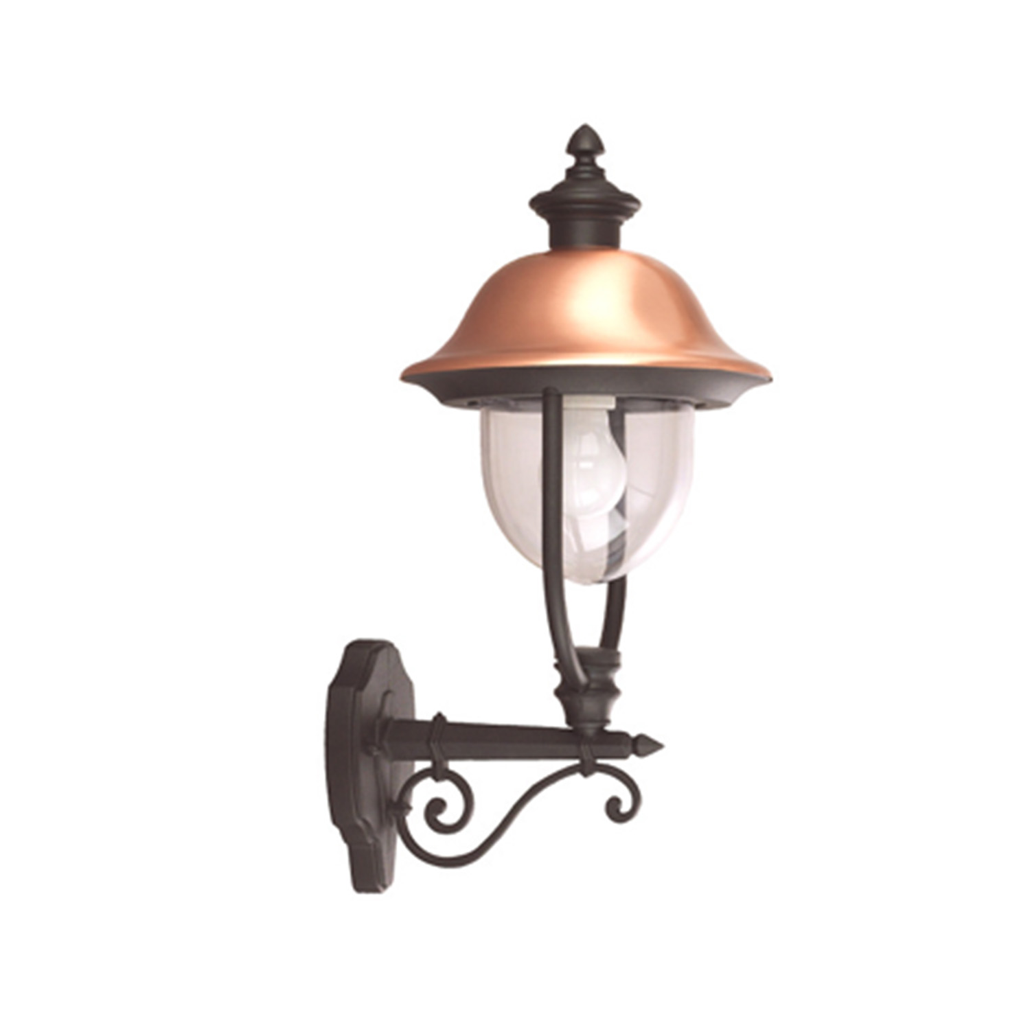 Applique con braccio - Versione in SU Struttura in Alluminio pressofuso Portalampada 1x75w/E27 Copertura in Colore RAME Diffusore in PC Colore: NERO/RAME.