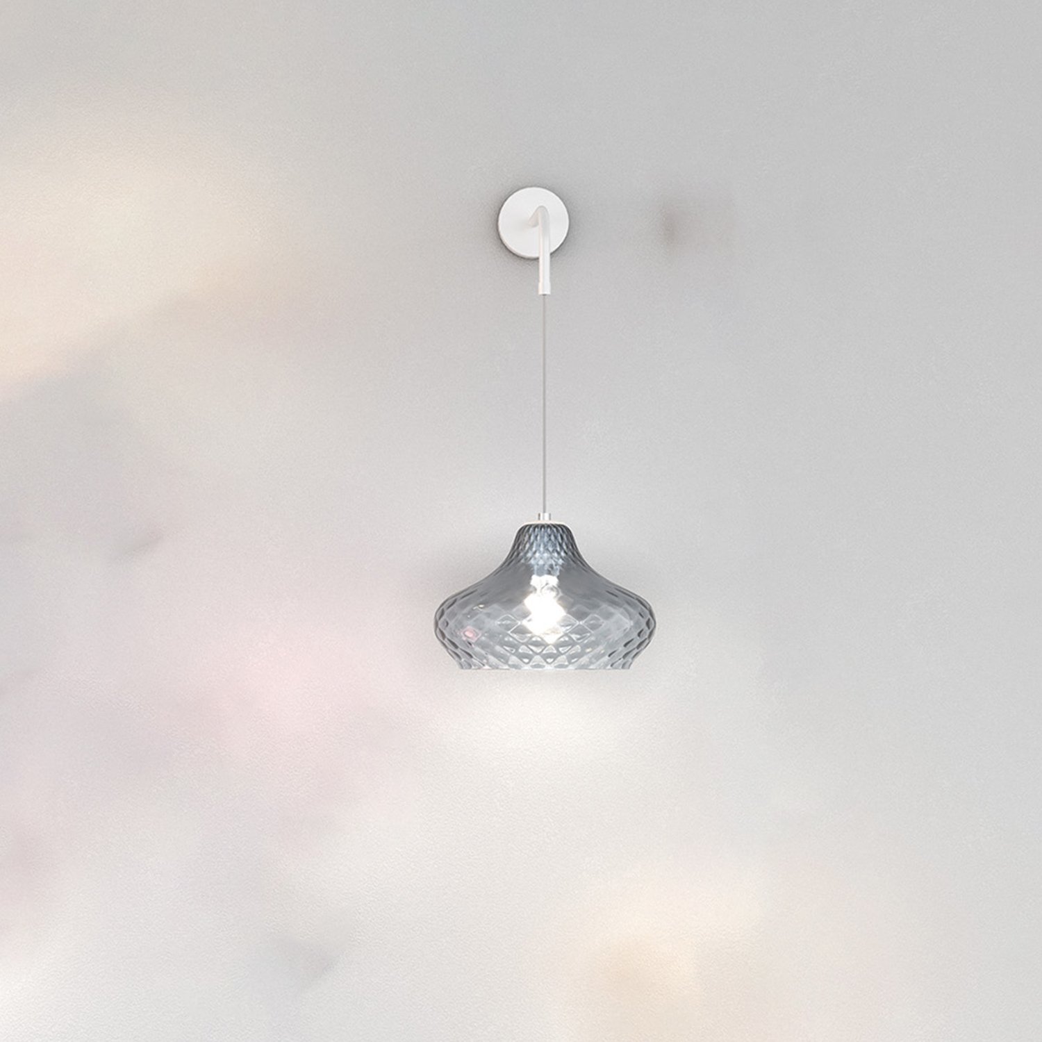 Collezione di lampade a sospensione composte da uno o più elementi in vetro soffiato regolabili in altezza. Gli elementi in vetro, disponibili in due dimensioni, sono caratterizzati da una lavorazione a rombi presente all'interno del vetro che ne arricchisce e valorizza il design. La serie viene completata da due modelli di lampade da parete, una da plafone e da una lampada da appoggio. Le finiture dei vetri sono ambra, rubino e zaffiro. Le strutture dei rosoni sono disponibili nelle finiture cromo, bianco e ottone satinato, mentre le finiture del portalampada sono unicamente di colore bianco.