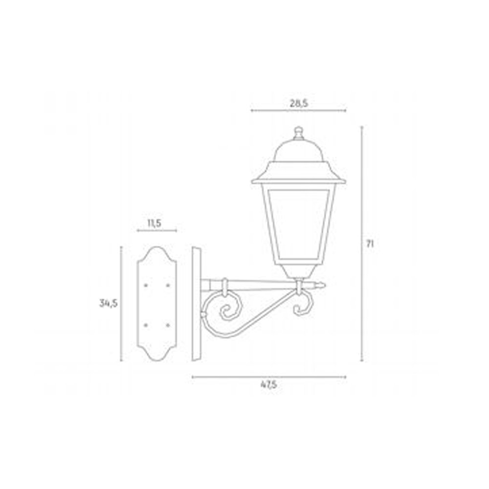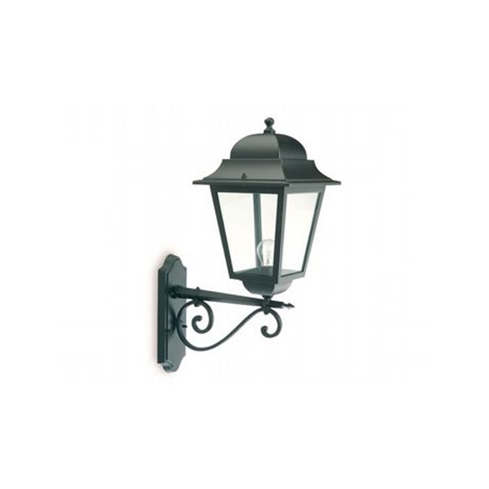 Applique per esterno a 1 luce con struttura in pressofusione di alluminio, color nero.. Diffusore in vetro trasparente rivolto verso l'alto. Disponibile anche verso il basso. Adatta per lampadina con altezza massima 240 mm (non inclusa).