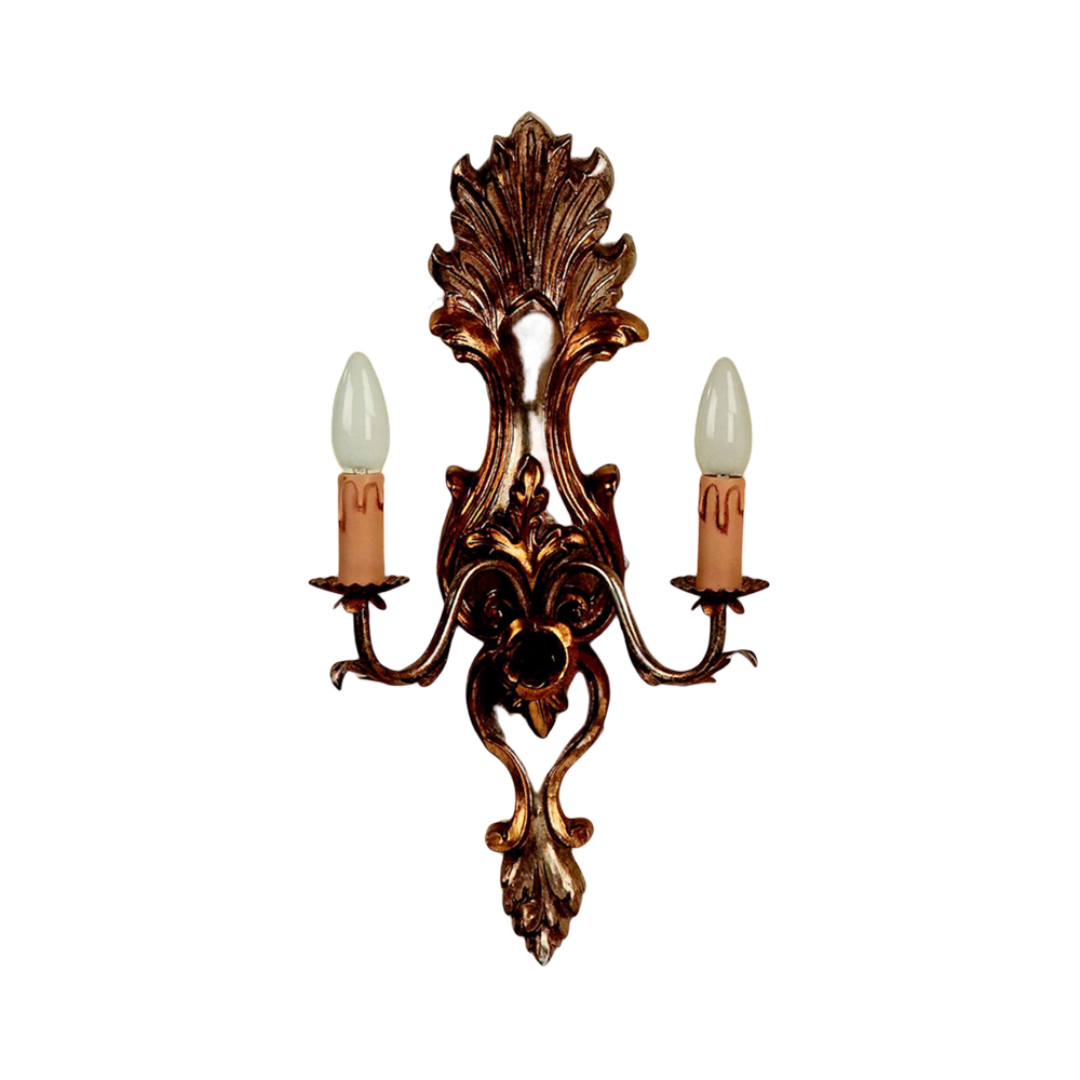 Applique realizzato a mano dai nostri mastri artigiani seguendo le più antiche tradizioni del legno. Struttura in legno intarsiato color argento mecca.. Monta 2 lampadine E14 (non inclusa) . Adatto ad un arredamento classico e raffinato