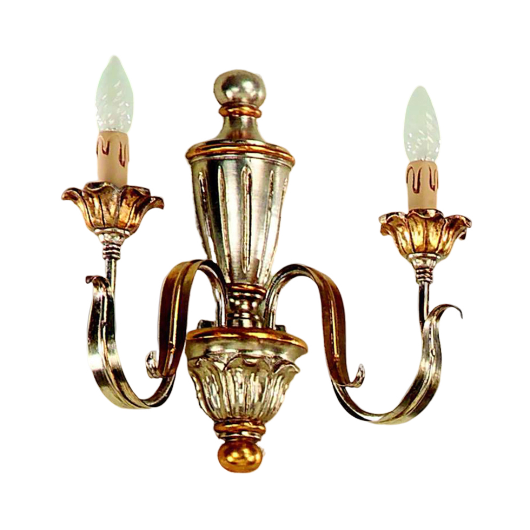 Applique realizzato a mano dai nostri mastri artigiani seguendo le più antiche tradizioni del legno. Struttura in legno intarsiato color argento mecca.. Monta 2 lampadine E14 (non inclusa) . Adatto ad un arredamento classico e raffinato