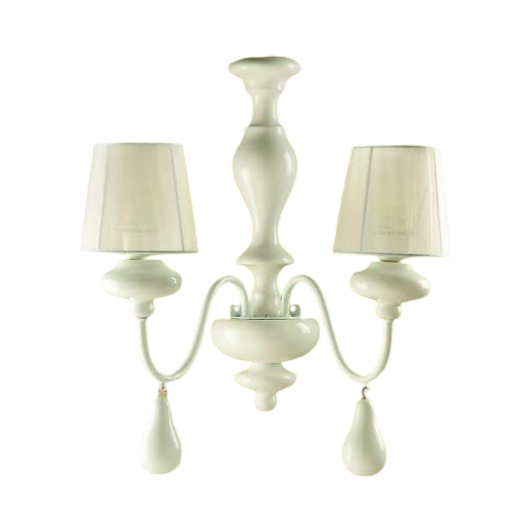 Applique In Legno Classico Bianco Lucido Con Paralume 2 Luci Albanella