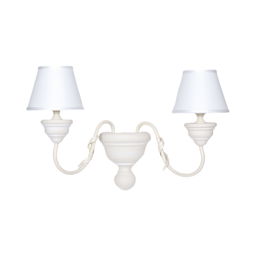 Applique In Legno Classico Crema Sbiancato Con Paralume 2 Luci Smergo