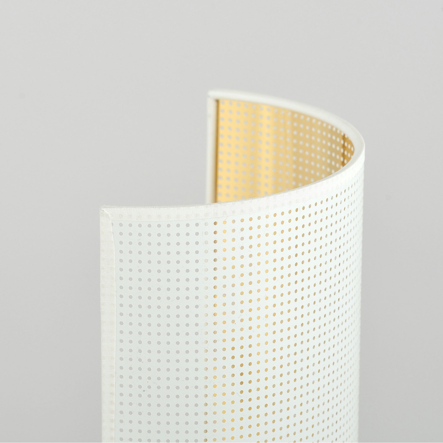 Applique 1 luce con base in metallo di colore nero e diffusore curvo in plastica con bordatura tessile di colore bianco all'esterno e di colore oro all'interno. Progettato con cura e realizzato con materiali di alta qualità. La semplicità e il minimalismo dell'applique ASTON la rendono versatile e adatta praticamente a qualsiasi stile di interno.