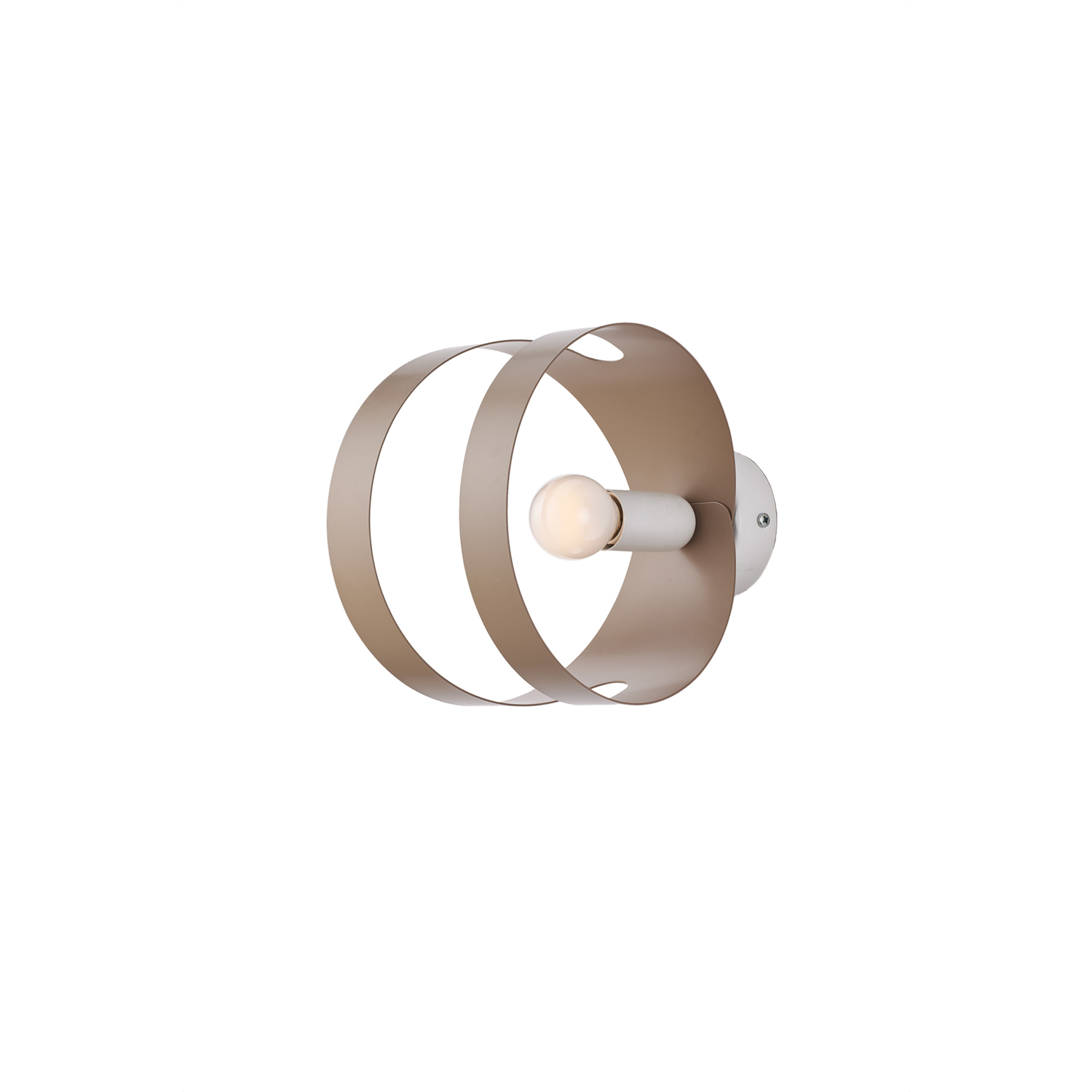 Applique moderna 1 luce con diffusore taglio laser in ferro laccato colore bianco e tortora.. Il diffusore crea giochi di luce interessanti, migliorando l'estetica e l'atmosfera dell'ambiente. Modello che combina ferro laccato e design moderni, per fornire un'illuminazione che ben si integra in spazi dalle linee pulite e minimaliste. Disponibile in diverse finiture.