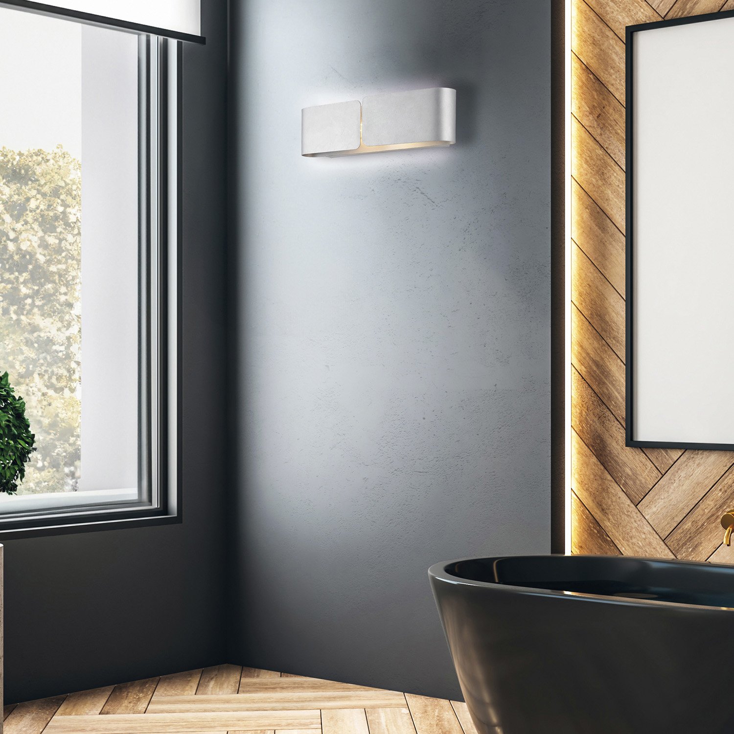 Applique a 2 luci con struttura in ferro laccato argento. . Una lampada adatta per l'illuminazione indiretta di una stanza. Le luci riflettono sulle pareti creando un'atmosfera accogliente e rilassante, riducendo l'abbagliamento. Adatta a molteplici utilizzi, dall'illuminazione di corridoi e ingressi a punti focali in soggiorni e camere da letto. Disponibile in diverse finiture.