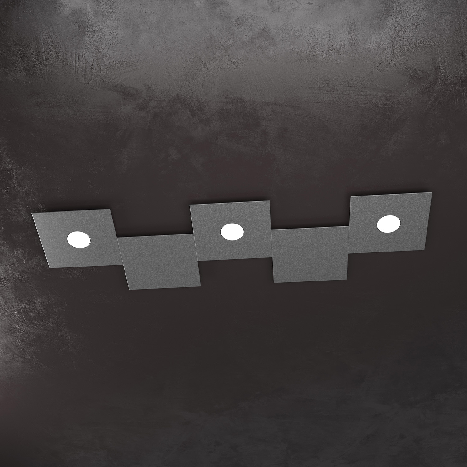 Collezione ECCENTRICLA LUCE ADATTABILE E FLESSIBILELampada 3 luci formata da due lastre quadrate di metallo verniciato in finitura grigio antracite.. Queste lampa..