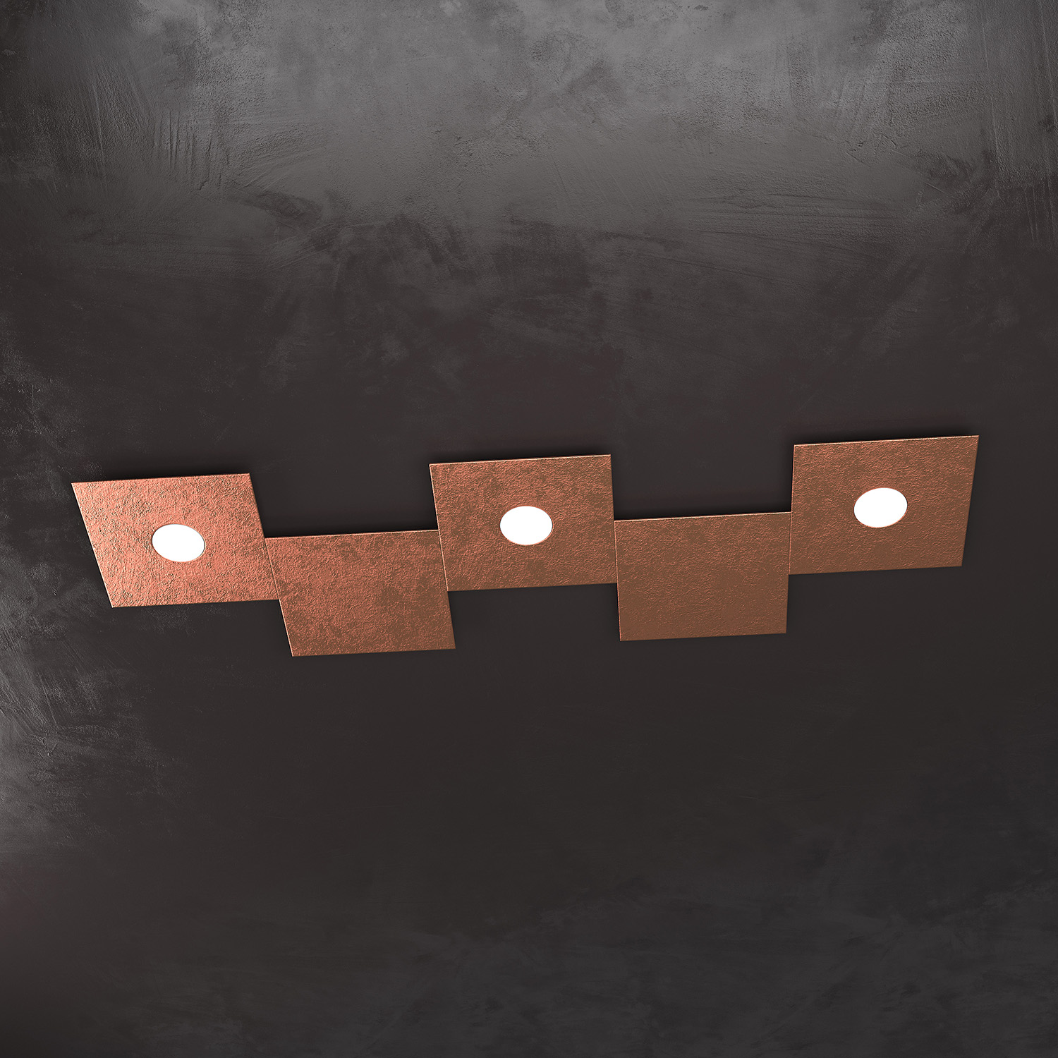 Collezione ECCENTRICLA LUCE ADATTABILE E FLESSIBILELampada 3 luci formata da due lastre quadrate di metallo verniciato in finitura foglia rame.. Queste lampade so..
