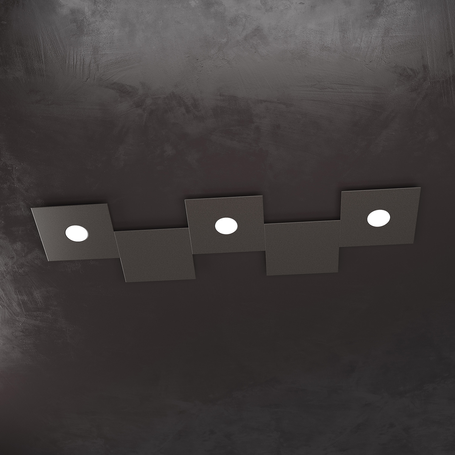Collezione ECCENTRICLA LUCE ADATTABILE E FLESSIBILELampada 3 luci formata da due lastre quadrate di metallo verniciato in finitura grigio antracite.. Queste lampa..