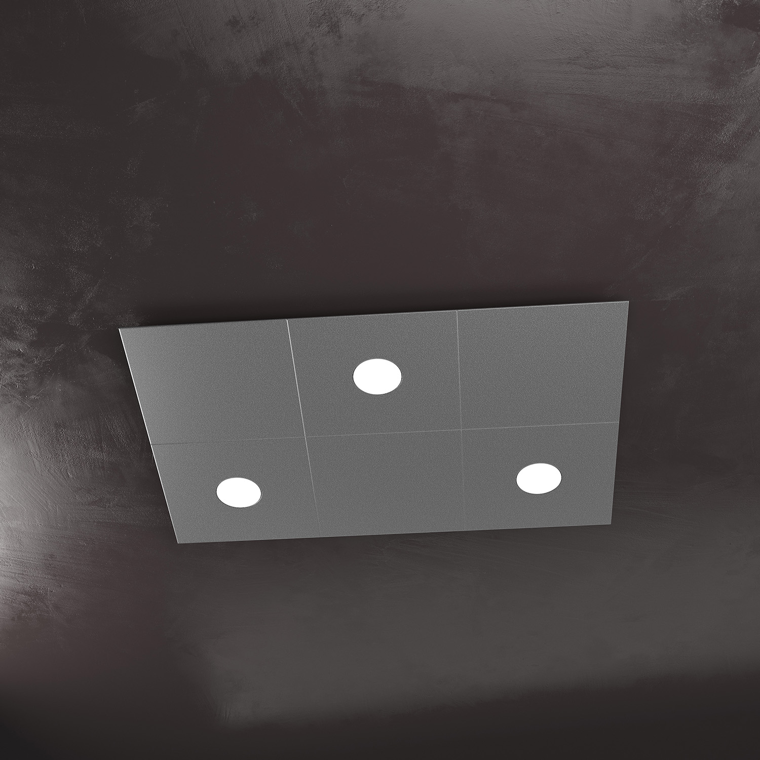 Collezione ECCENTRICLA LUCE ADATTABILE E FLESSIBILELampada 3 luci formata da due lastre quadrate di metallo verniciato in finitura grigio.. Queste lampade sono co..