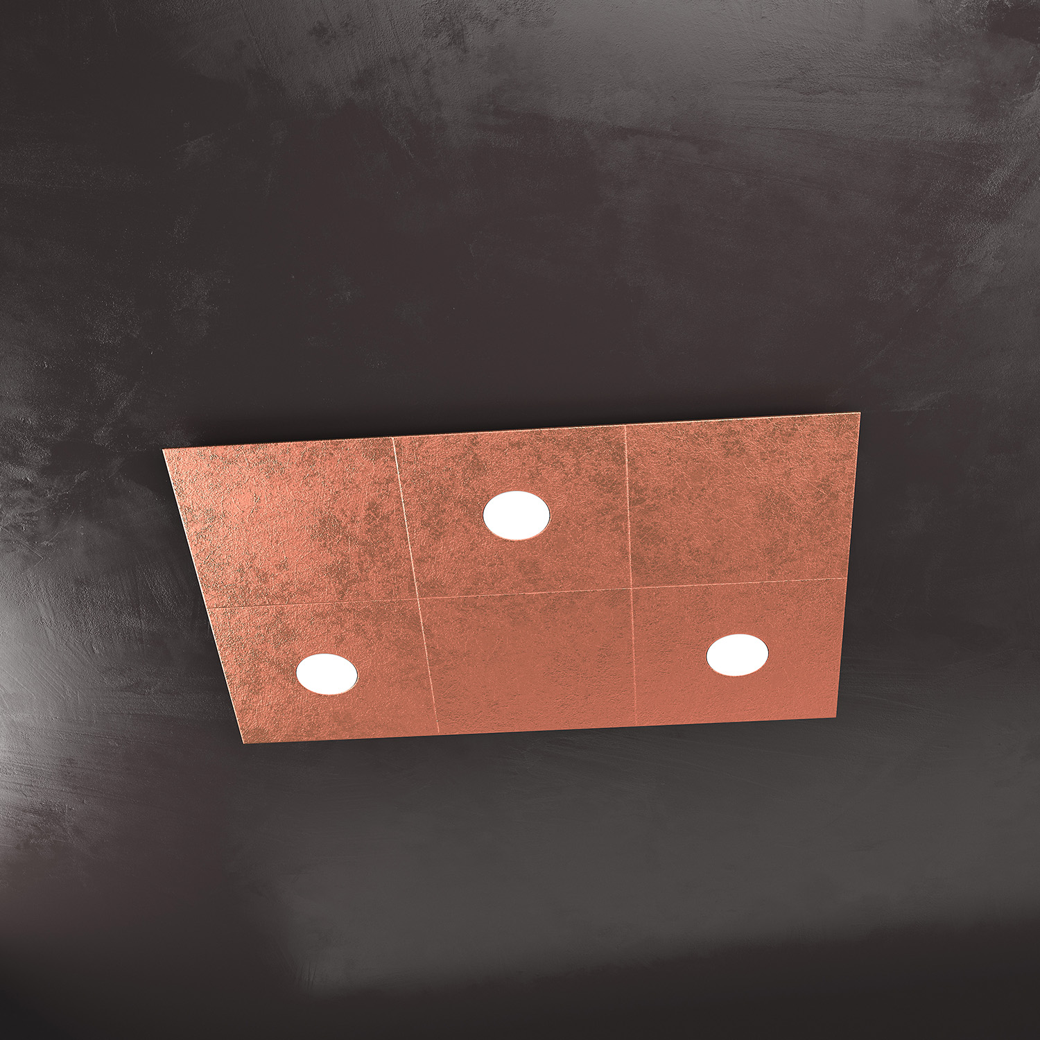 Collezione ECCENTRICLA LUCE ADATTABILE E FLESSIBILELampada 3 luci formata da due lastre quadrate di metallo verniciato in finitura foglia rame.. Queste lampade so..