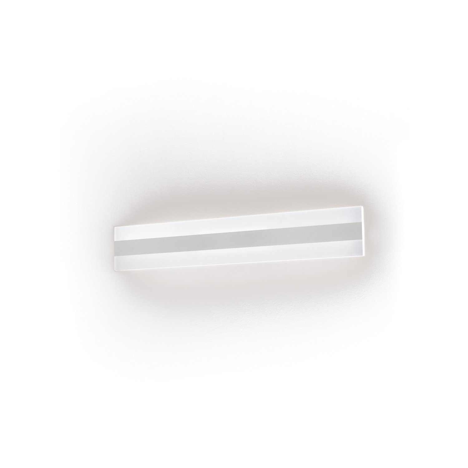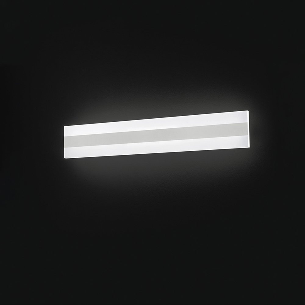 Applique da parete con telaio in metallo verniciato a polvere di colore bianco opaco e diffusore in plexiglass trasparente. È un'ottima soluzione di illuminazione per interni moderni. Il suo design semplice ed elegante garantisce una diffusione uniforme della luce. La sua forma snella permette di adattarsi a qualsiasi ambiente e stile di arredamento. Inoltre, grazie alla sua fonte luminosa a LED integrata, questa applique è anche molto efficiente dal punto di vista energetico.