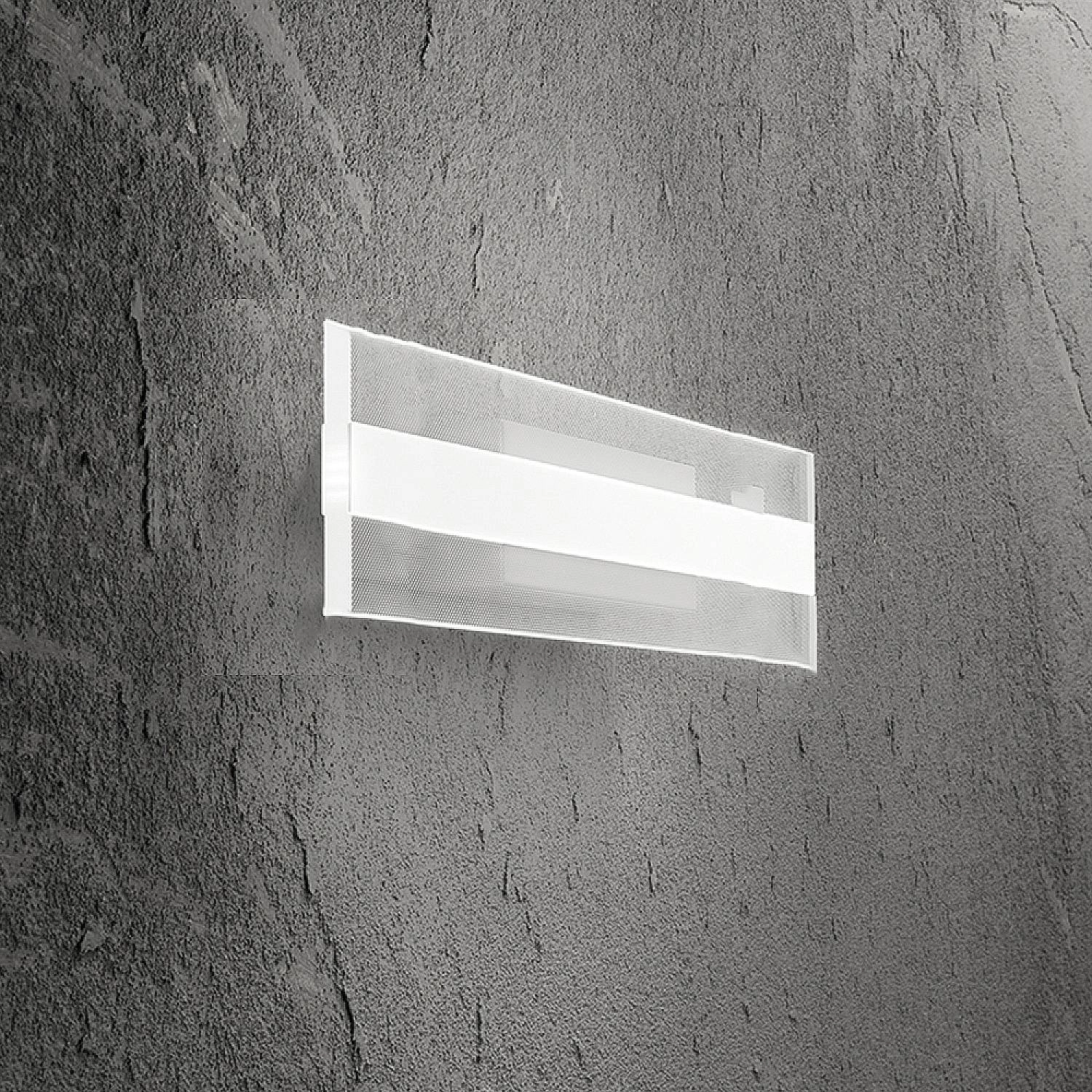 Applique da parete con telaio in metallo verniciato a polvere di colore bianco opaco e diffusore in plexiglass trasparente. È un'ottima soluzione di illuminazione per interni moderni. Il suo design semplice ed elegante garantisce una diffusione uniforme della luce. La sua forma snella permette di adattarsi a qualsiasi ambiente e stile di arredamento. Inoltre, grazie alla sua fonte luminosa a LED integrata, questa applique è anche molto efficiente dal punto di vista energetico.